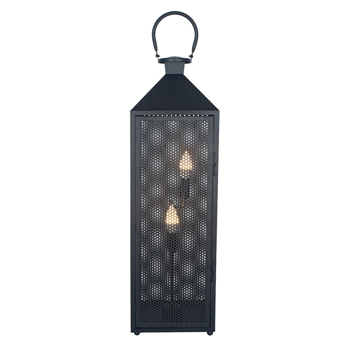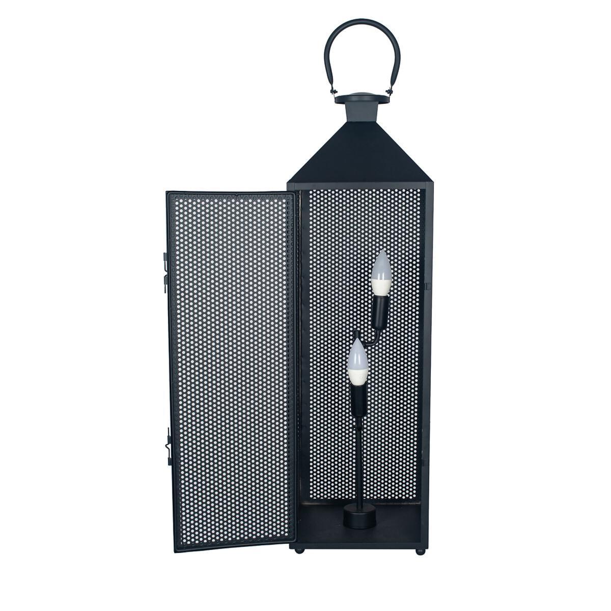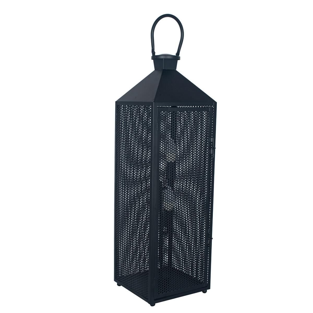 84cm Matt Black Metal Punched Lantern Floor Lamp