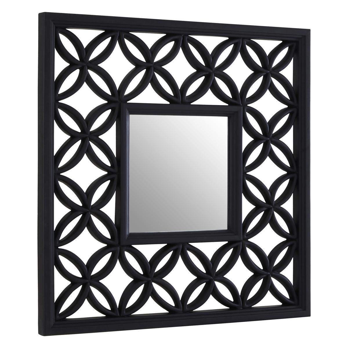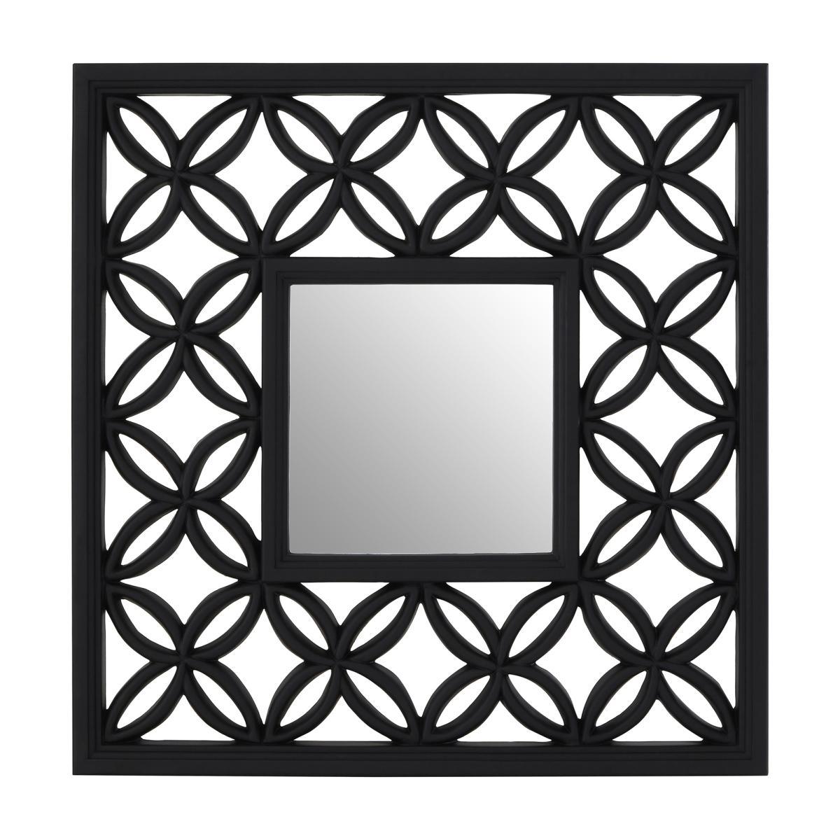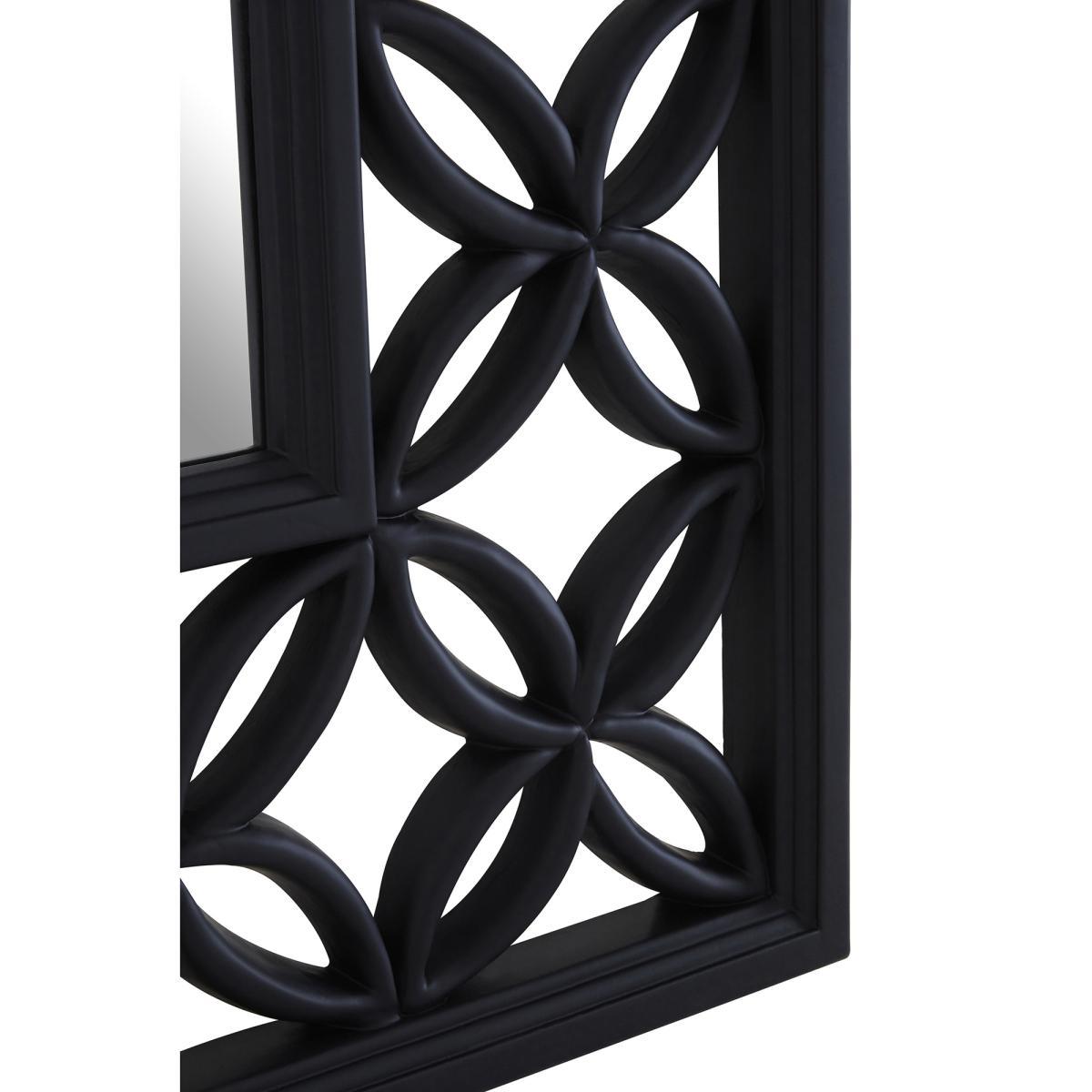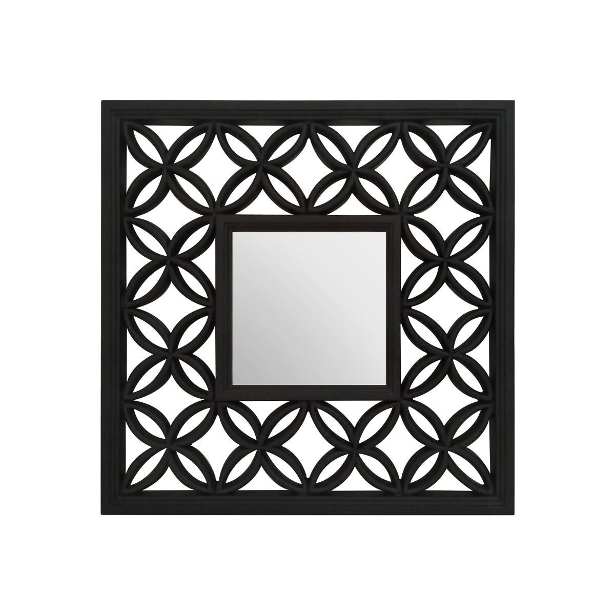 This product will be dispatched by one of our trusted suppliers. From one perspective this mirror's black frame is comprised of a series of petal shapes arranged around the central reflective surface. Viewed alternatively, circles envelop elongated diamond shapes. Both perspectives are inspired by exotic Moorish design motifs, making this wall mirror suited to Traveller / Fusion design settings. Product Dimensions:W88 x H88 cm