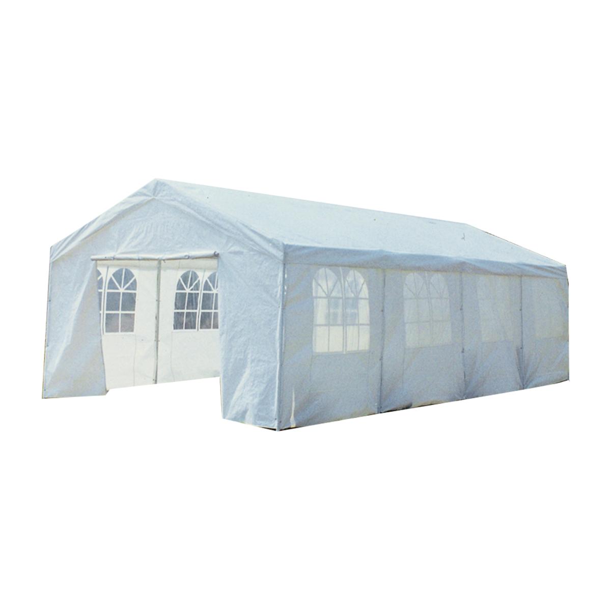 This large heavy-duty marqueetent is ideal for use at parties, weddings, fetes, camping and other gatherings. It is designed to offer strength and stability as well as offer some protection from wind and rain. Church-style windows offer natural light and a view outside and inside for all your party guests. The marquee has one door that can be rolled up and secured open, or can let down for a fully enclosed gazebo. Please Note Will provide some resistance against wind and rain but should NOT be used in these conditions and should never be left up overnight.