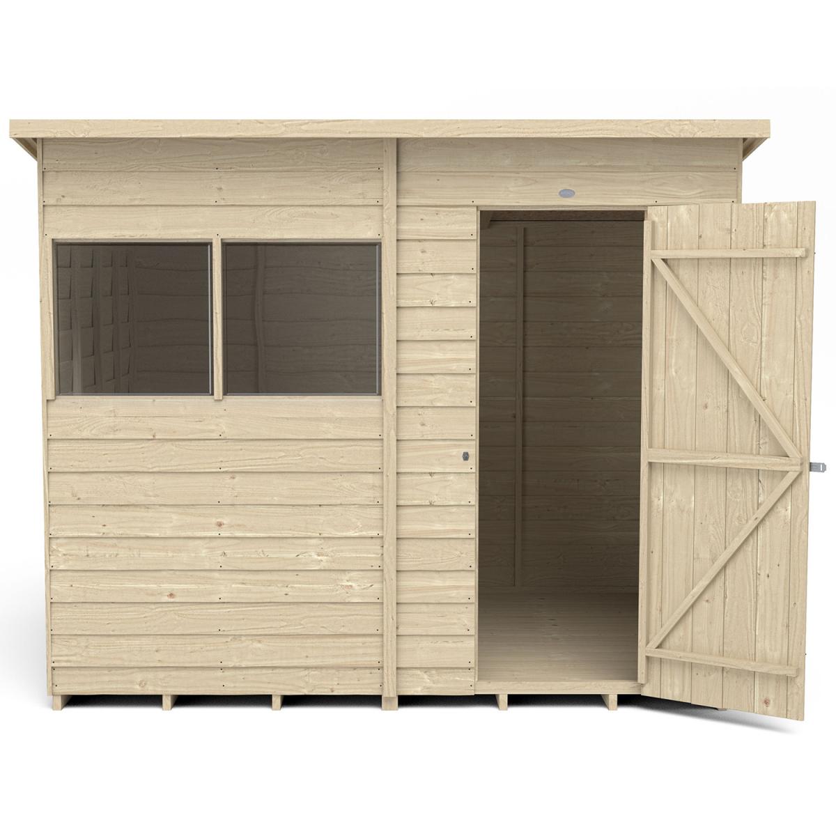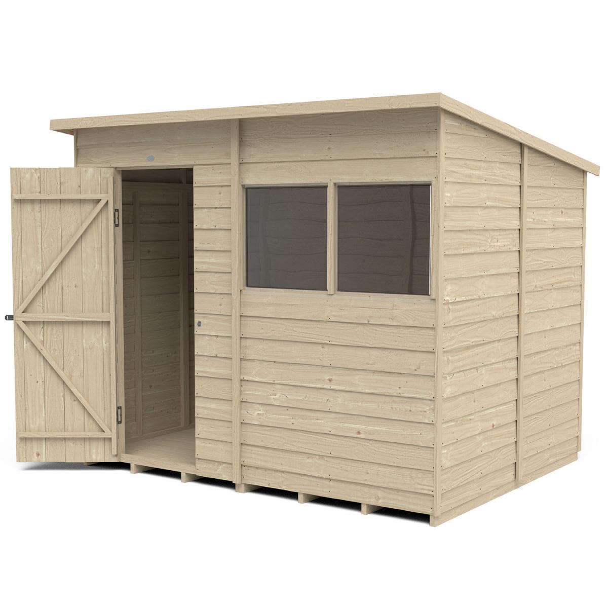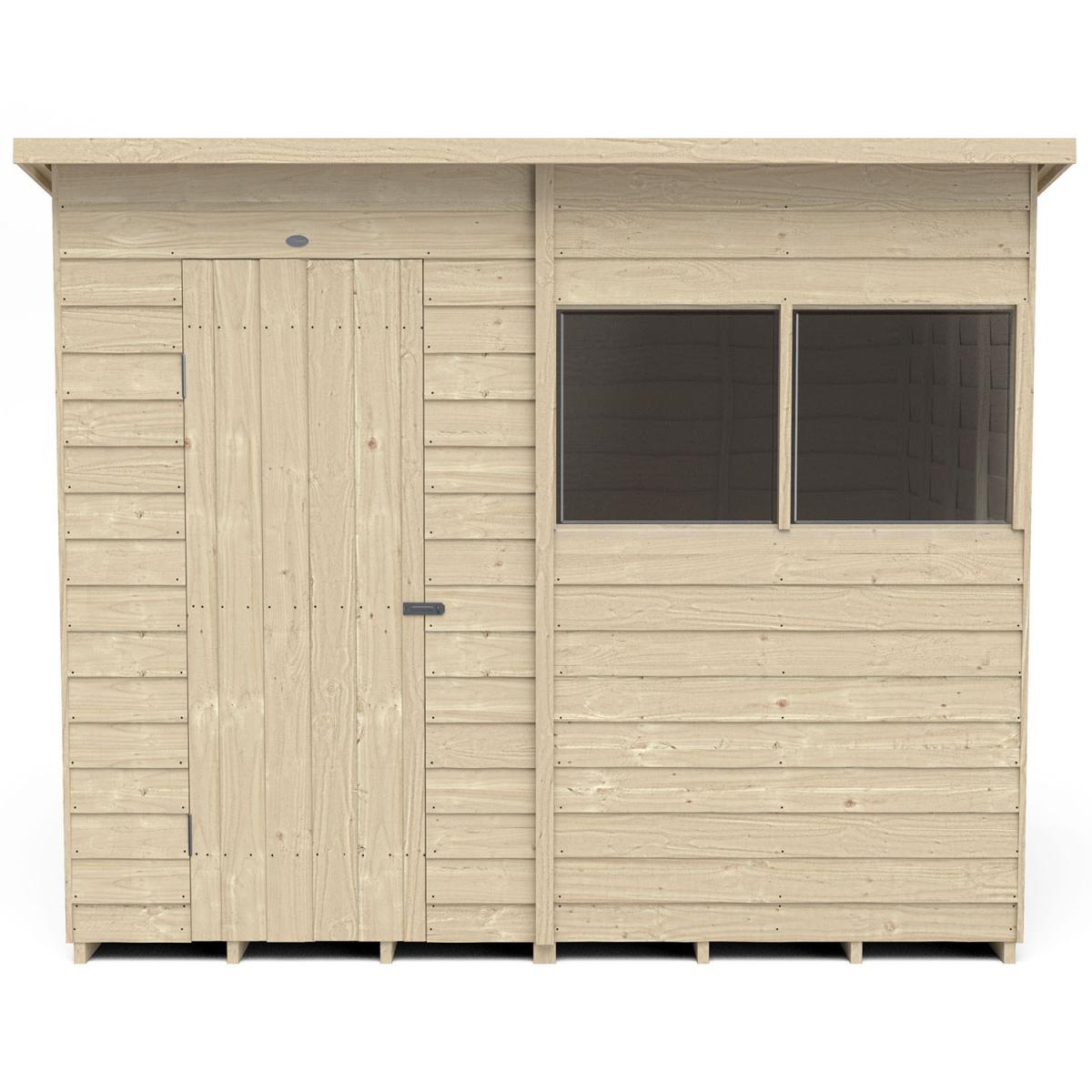 The 8x6 Overlap Pressure Treated Pent Shed is the ideal garden storage shed, helping you keep your garden neat, tidy, and stylish. The slanted pent roof is perfect for placing this shed against a wall or fence and will look brilliant in your garden. Available in an array of sizes to help you find one that's perfect for your needs and outdoor space, the Overlap Pent Shed is perfect for storing away garden machinery and tools, bikes, kids' outdoor toys, and much more. Constructed using pressure treated timber, the Overlap Pent Shed will stay strong and durable for years to come. It is resistant to rot and fungal infections, and the overlap design of the timber boards allows for natural movement of the timber during changing weather conditions and aid in water run-off. With increased framing to give the building a stronger construction, the shed comes with a solid timber floor, which is much hardier than more common OSB, making it ideal for storing heavier gardening equipment. The windows are made from shatter-proof PET glazing, which won't become yellow and brittle over time, making sure your shed always looks attractive. The shed also comes with hidden security measures, featuring anti-tamper hinges that can't be seen or accessed from the outside, as well as a hasp and staple latch that allows you to padlock the door. The pressure treating of the timber allows for the pale gold colour and natural wood grain to really shine through. This paired with the understated yet stylish construction will help this Pent Shed become a decisively sweet and charming structure within your garden, complimenting all natural foliage and any colour scheme of your decor. Installation by a team of professionals is available for an extra yet affordable price, and all fittings and fixtures are included with this shed, as well as easy-to-follow instructions are included for any DIY hobbyists who want to really make this shed their own by building it themselves.