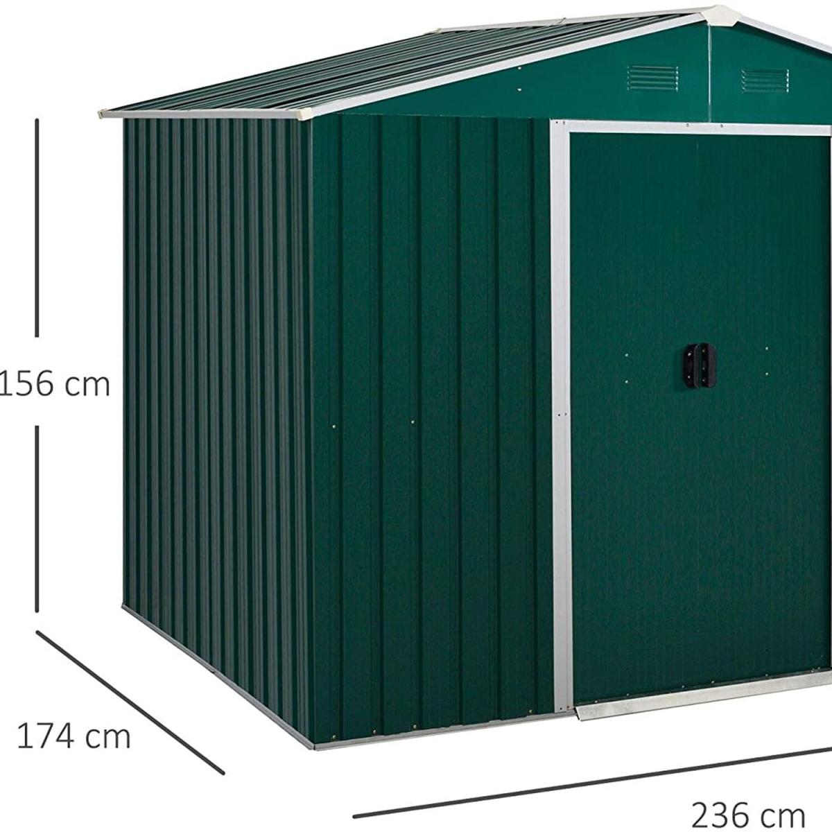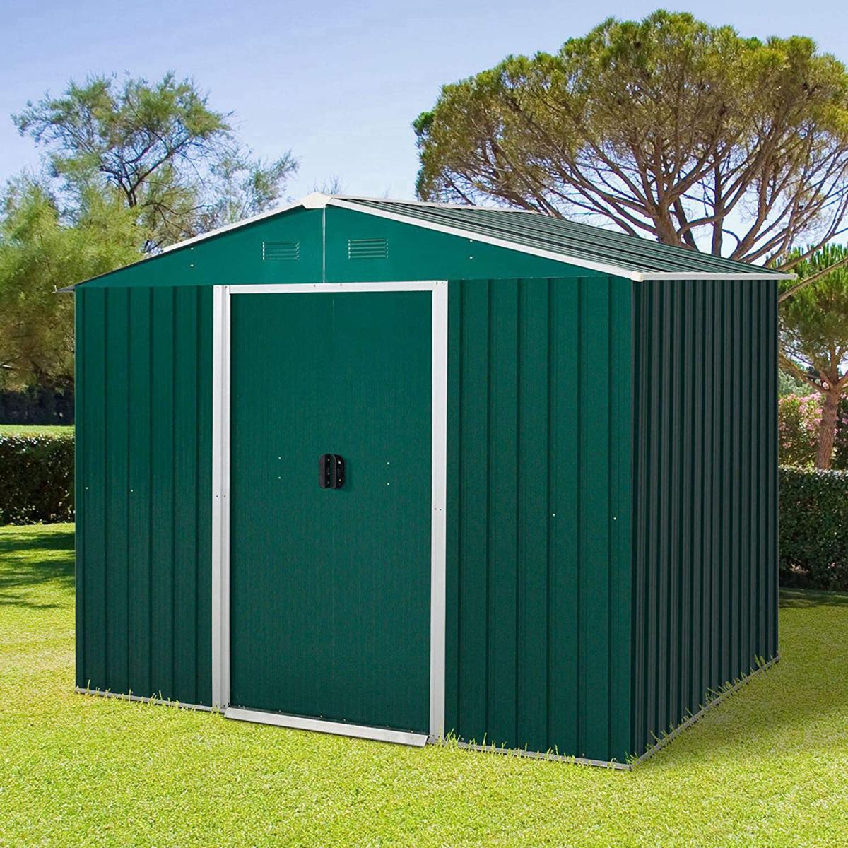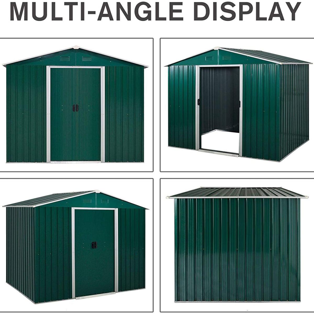 8x6ft Outdoor Garden Roofed Metal Storage Shed - Green