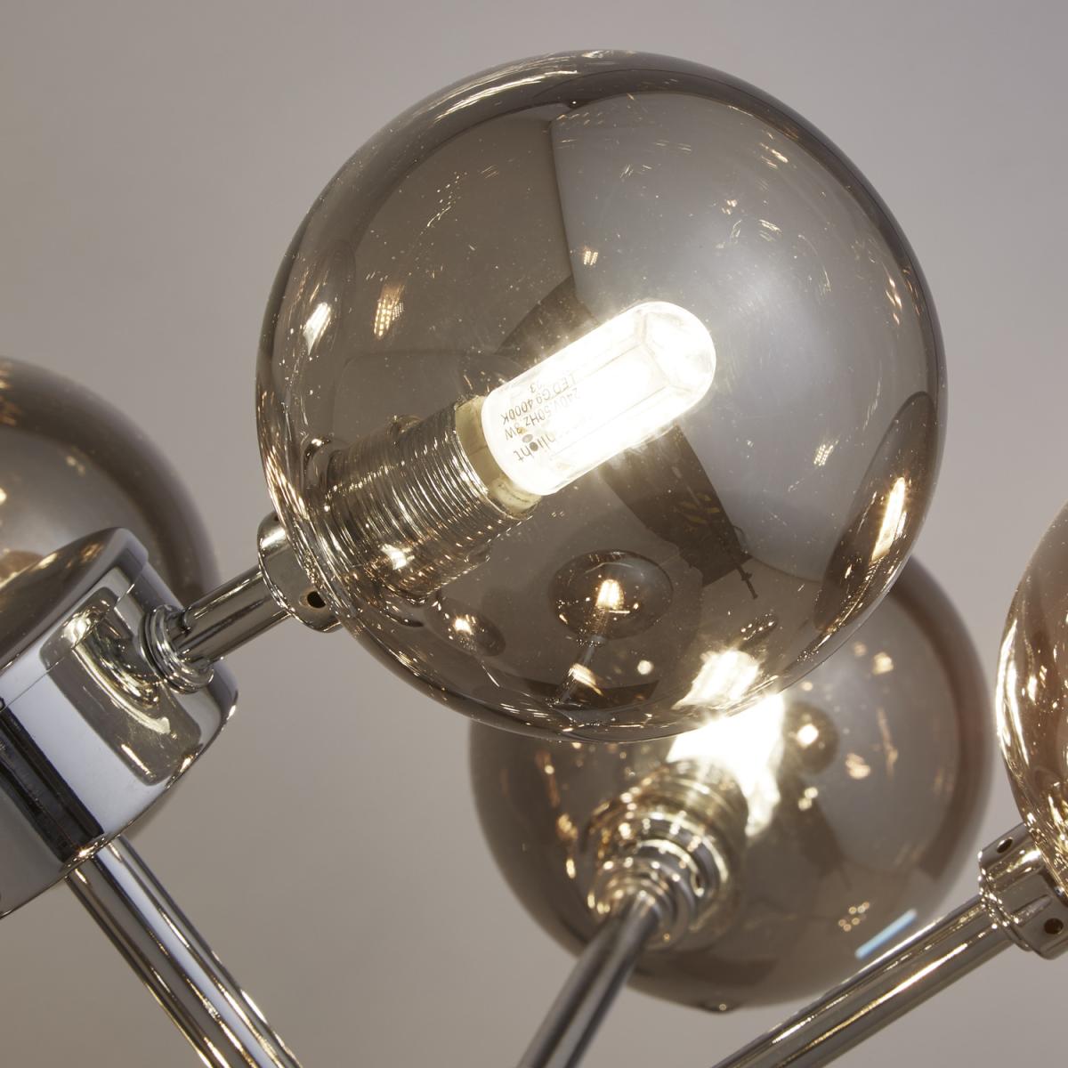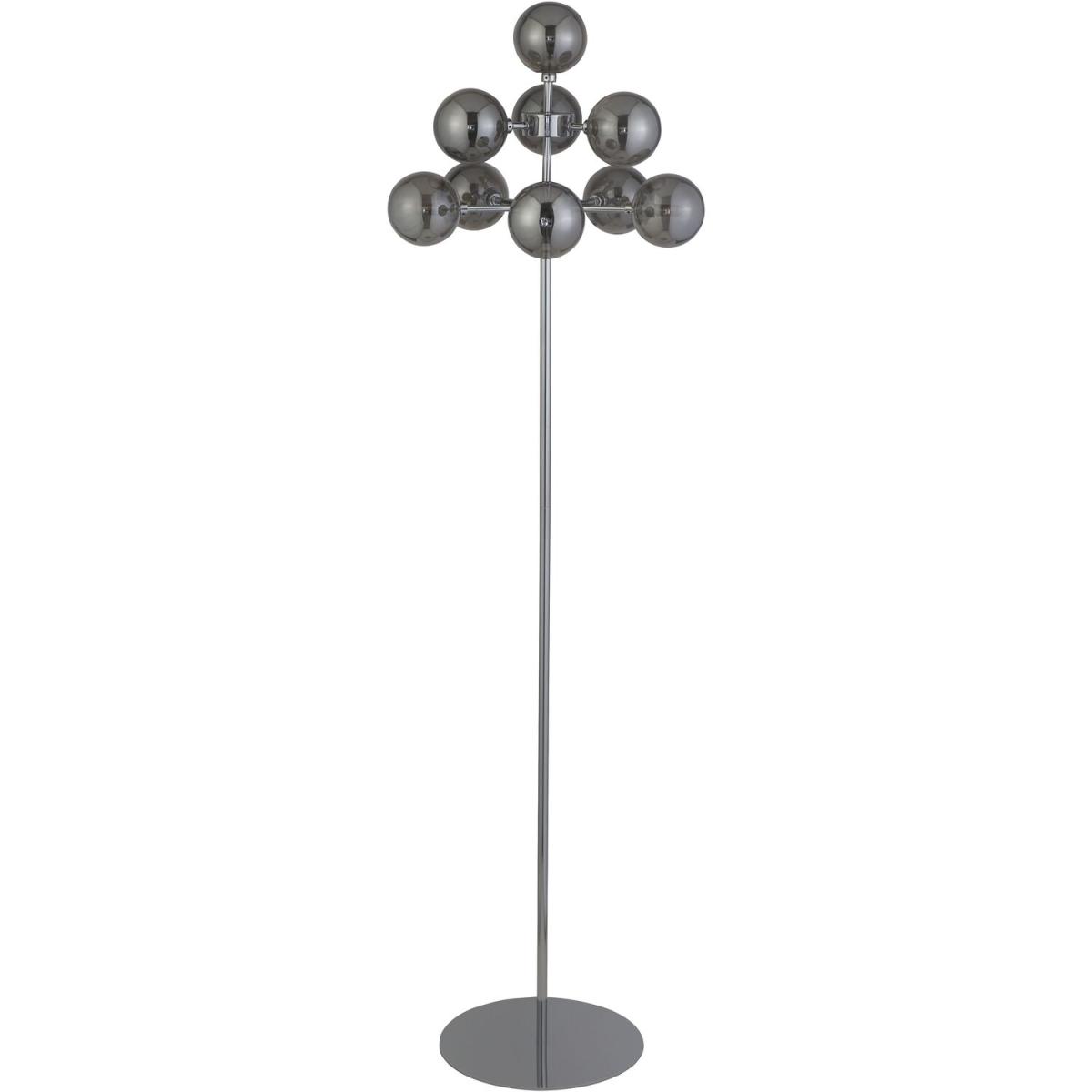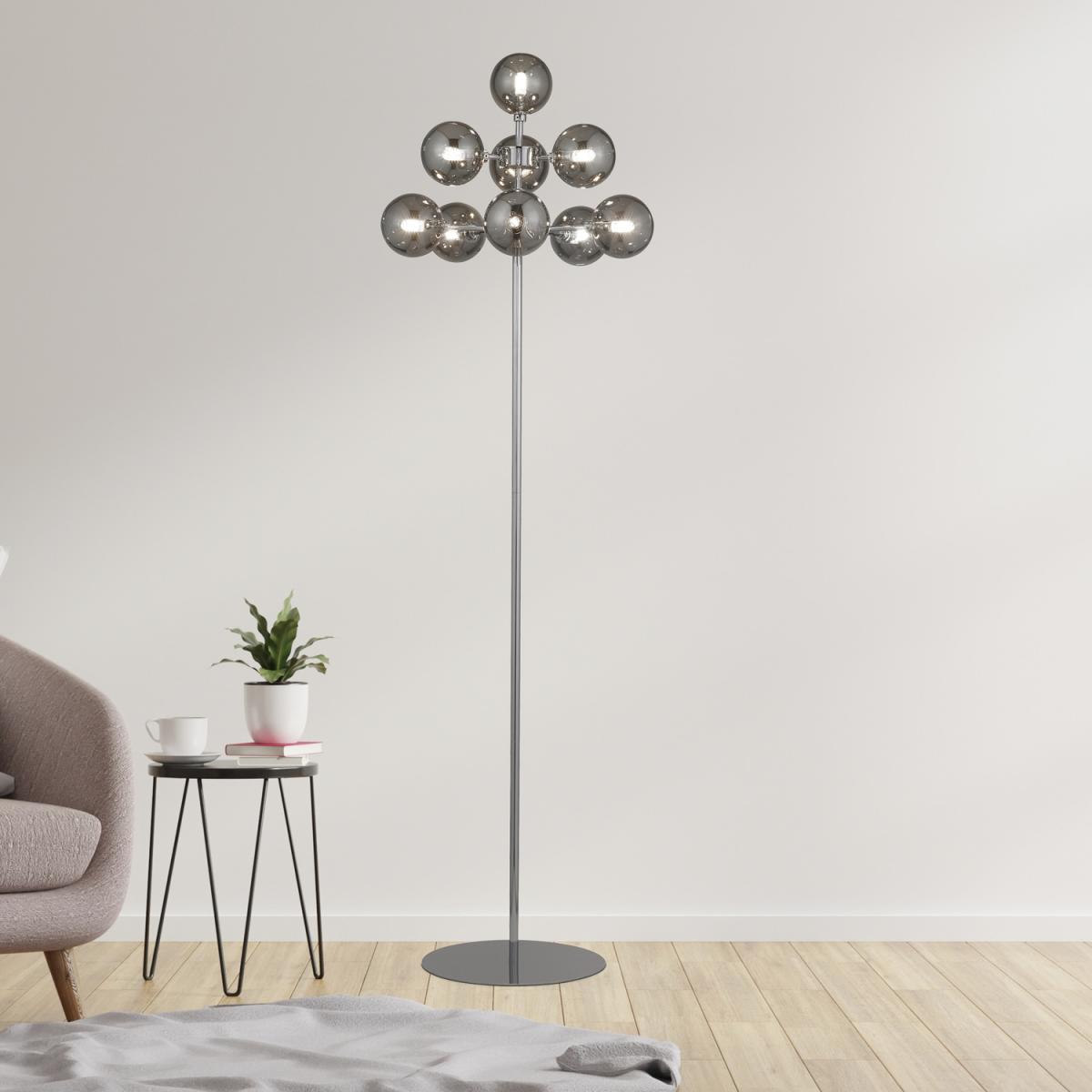 This stunning floor lamp will create a talking point to any living area. The chrome base is topped with 9 smoked glass shades, creating a contemporary floor lamp for any home.