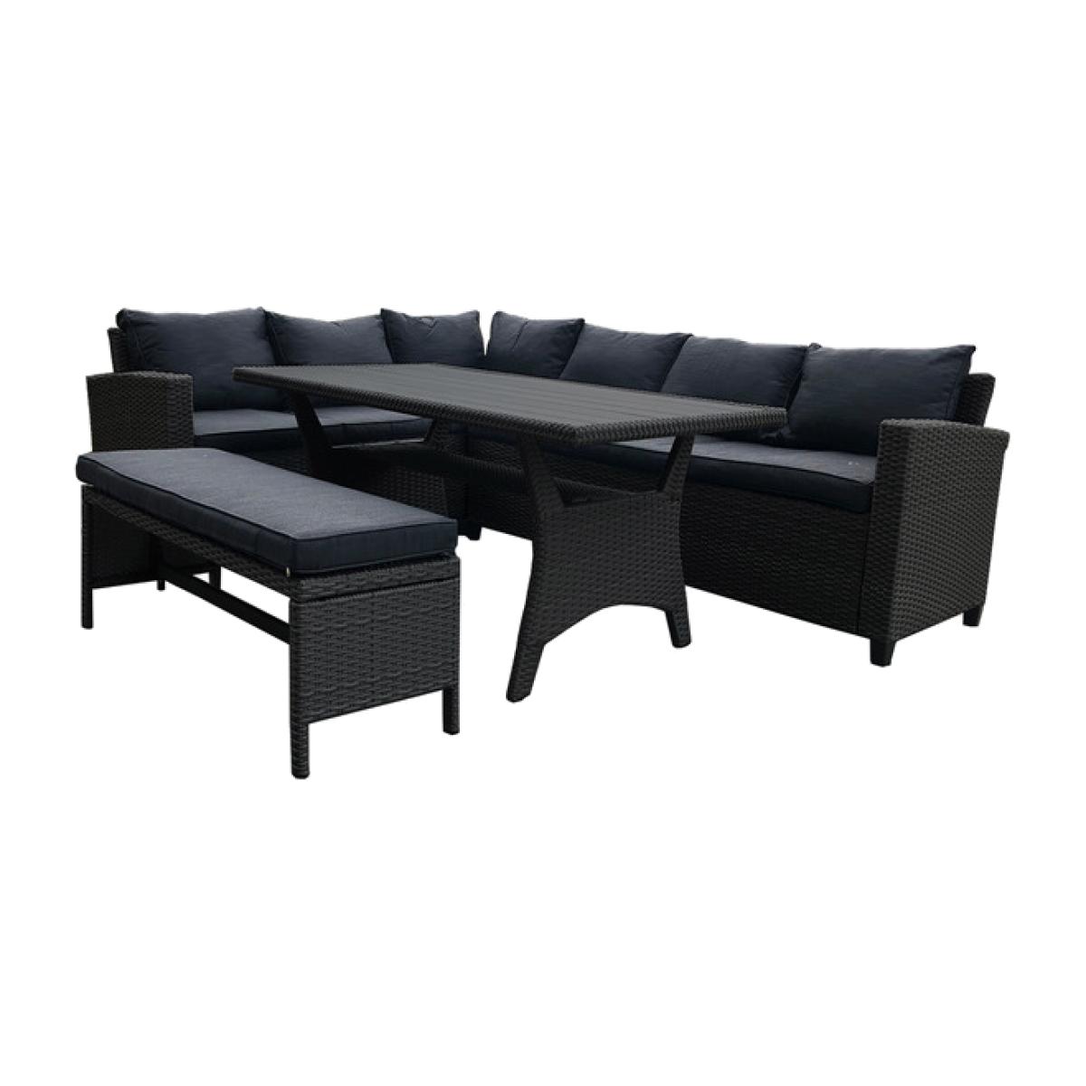 Still looking for a nice rattan sofa set? If so, this 9-seat patio rattan sectional sofa set will be a perfect choice!Made of sturdy steel construction and all-weather PE wicker, this wicker furniture set is durable and stable enough to support long-lasting use. Lofty sponge-padded cushions and pillows can provide great comfort for you. This patio furniture provides enough space for gatherings of family and friends and can be combined in various ways according to your different needs. Besides, the matching dining table with a large wooden top is perfect for holding drinks and food as you lounge in the sun. Just lean on the sofas and enjoy your outdoor leisure time with your loved ones!