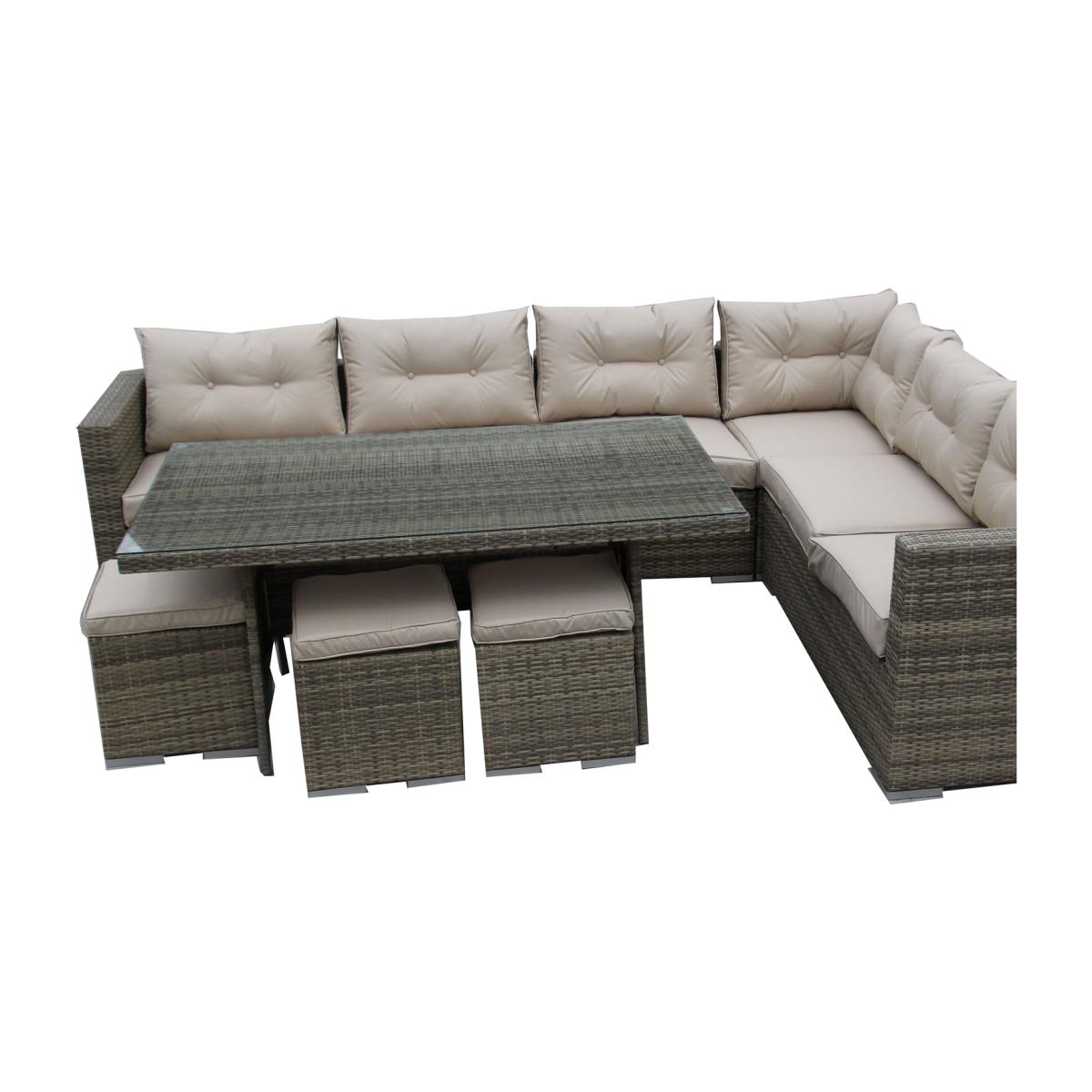 Still looking for a nice rattan sofa set? If so, this 9-seat patio rattan sectional sofa set will be a perfect choice!Made of sturdy steel construction and all-weather PE wicker, this wicker furniture set is durable and stable enough to support long-lasting use. Lofty sponge-padded cushions and pillows can provide great comfort for you. This patio furniture provides enough space for gatherings of family and friends and can be combined in various ways according to your different needs. Besides, the matching dining table with a large wooden top is perfect for holding drinks and food as you lounge in the sun. Just lean on the sofas and enjoy your outdoor leisure time with your loved ones!