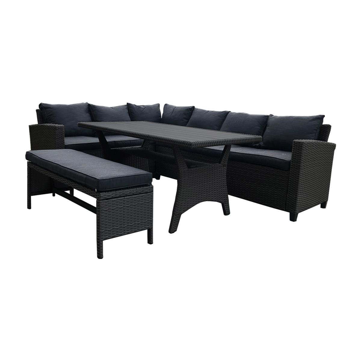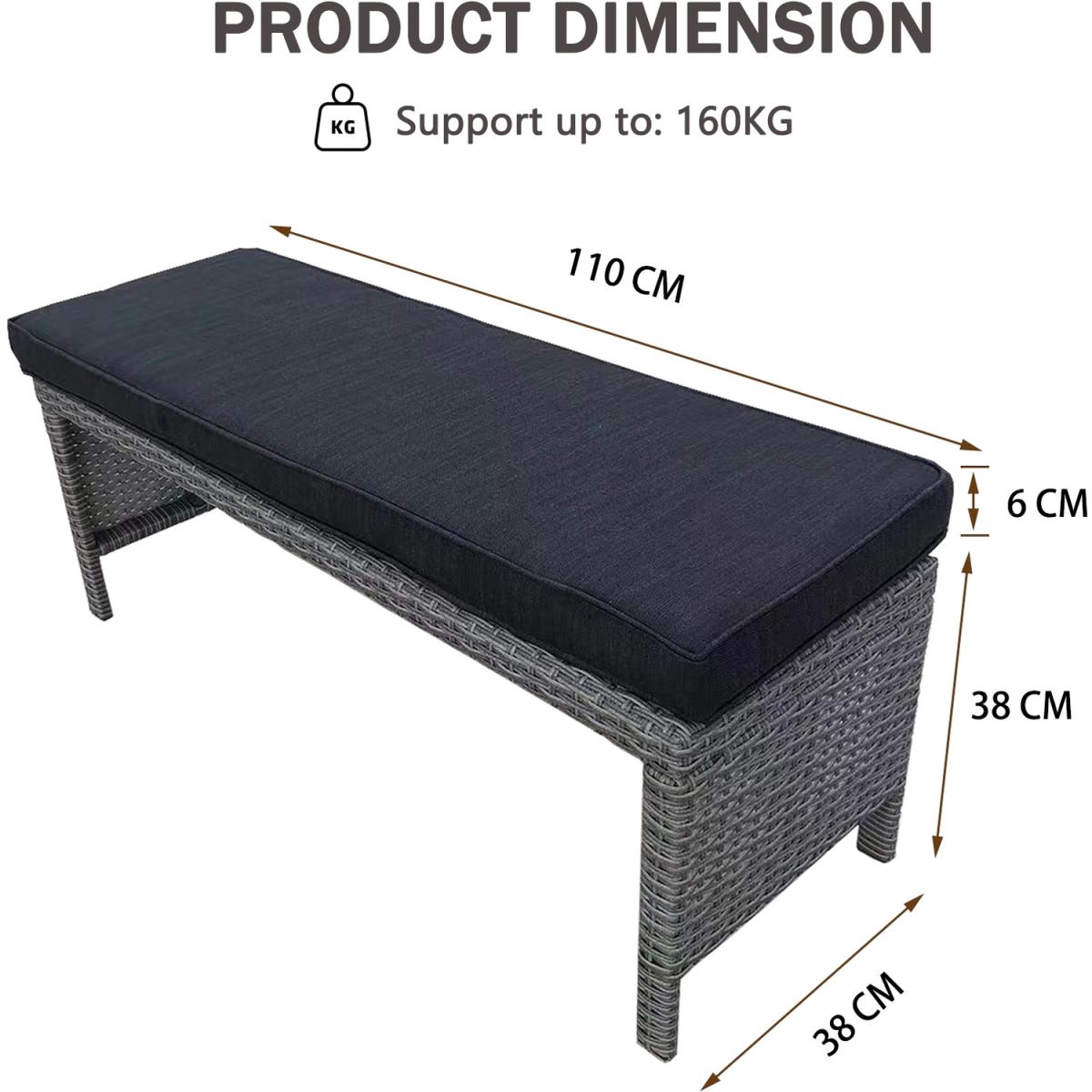 This outdoor sectional backyard furniture has a steel frame and beautiful hand-woven PE rattan. All-weather rattan is more UV and water-fighting than normal wicker, so it's perfect for outdoor dining. The thick padded seat and back cushions of the patio sectional furniture set offers maximum comfort for your lounging experience. The cushion cover is easy to clean with a water-repellent and stain-resistant polyester cover. The long rectangle rattan table with a matching bench of the outdoor sofa set creates a centrepiece for the sectional and a place for you to eat and drink with friends.