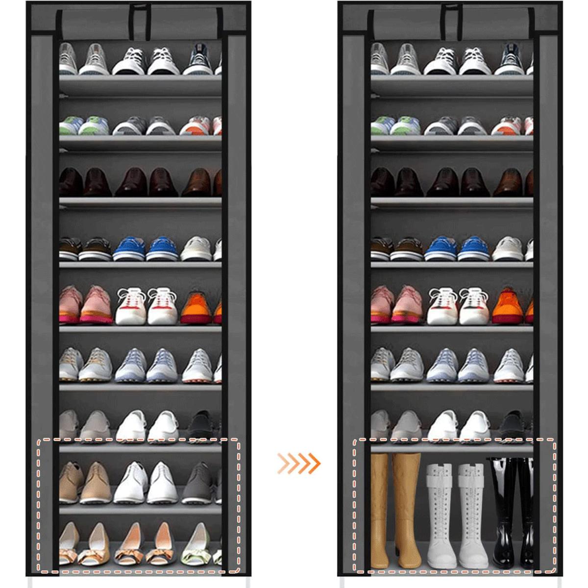 9 Tier Shoes Rack with Dustproof Cover - Black