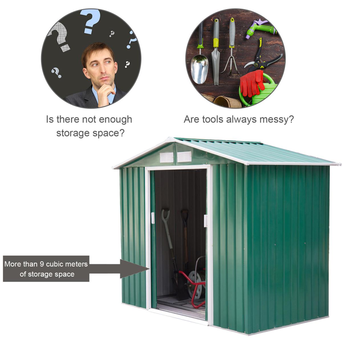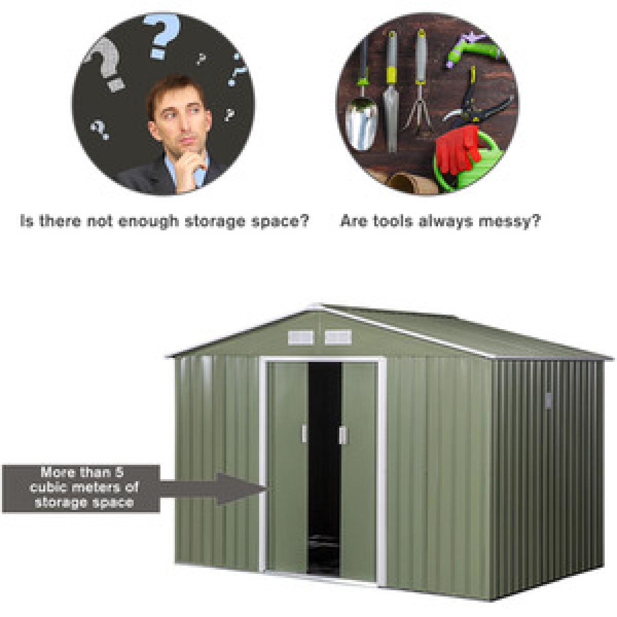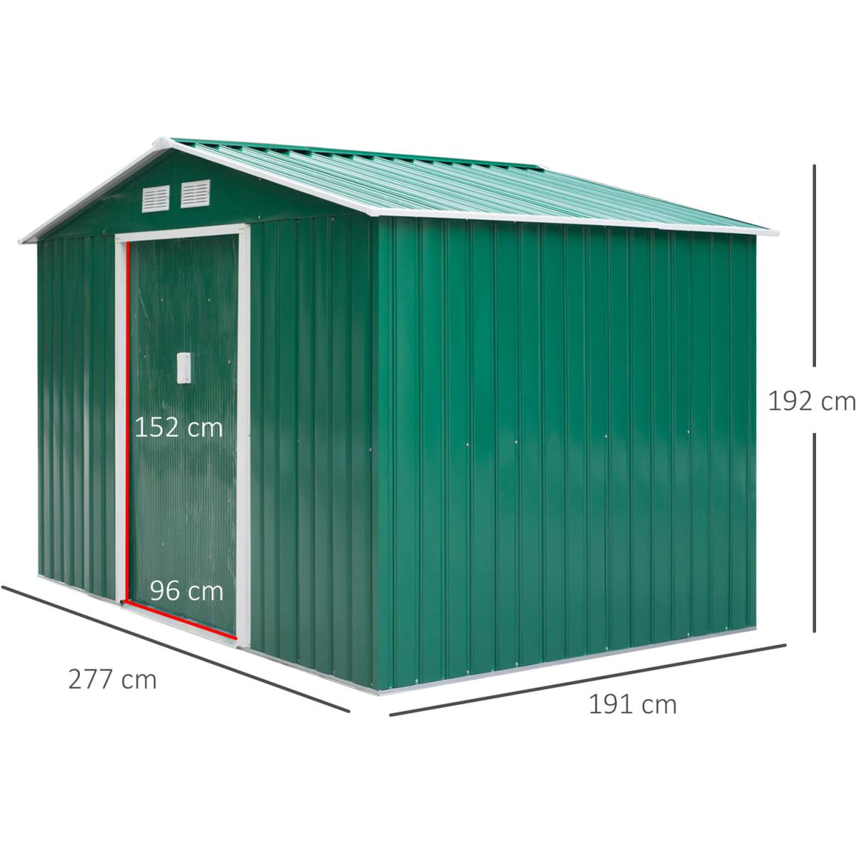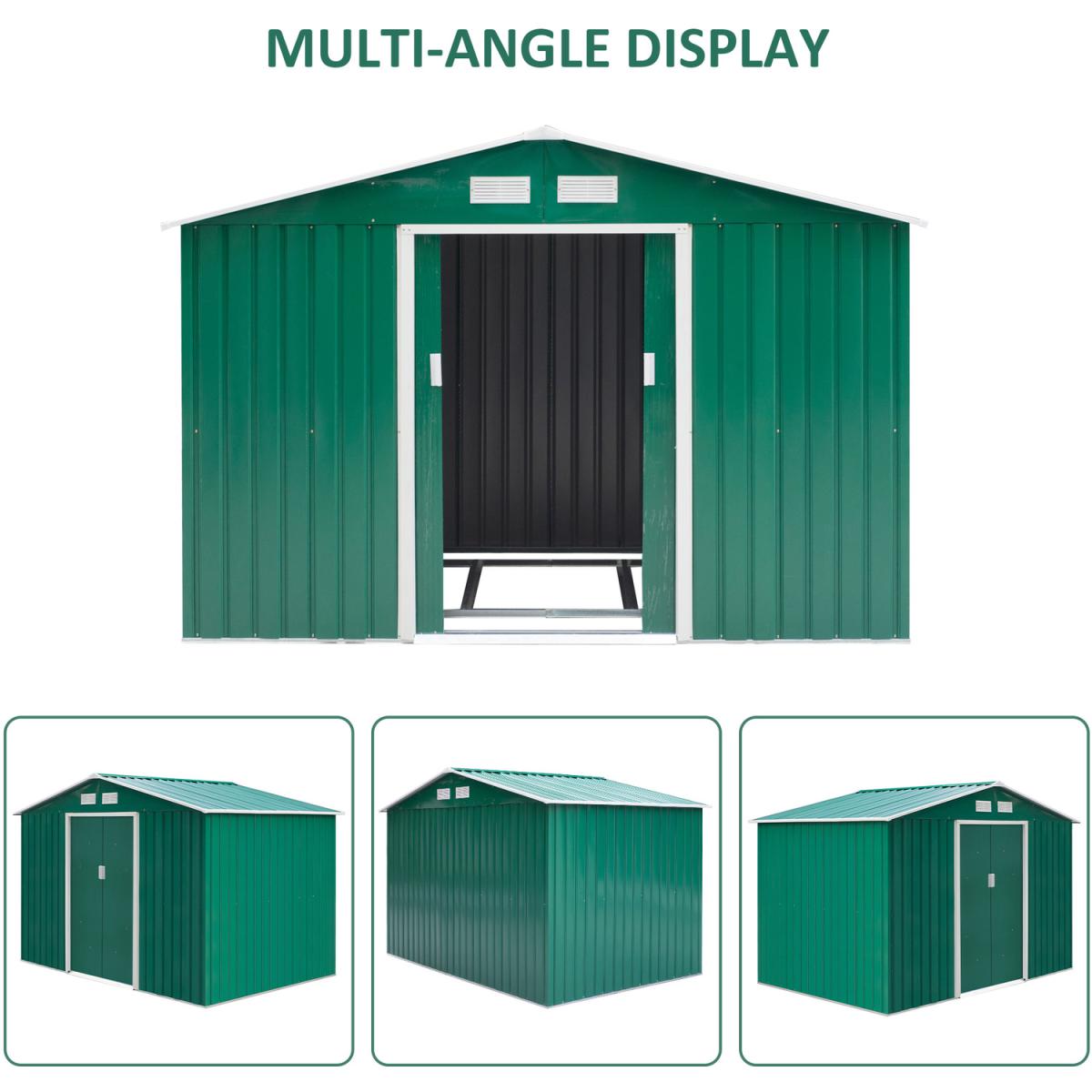 9 x 6FT Outdoor Garden Roofed Metal Storage Shed - Green