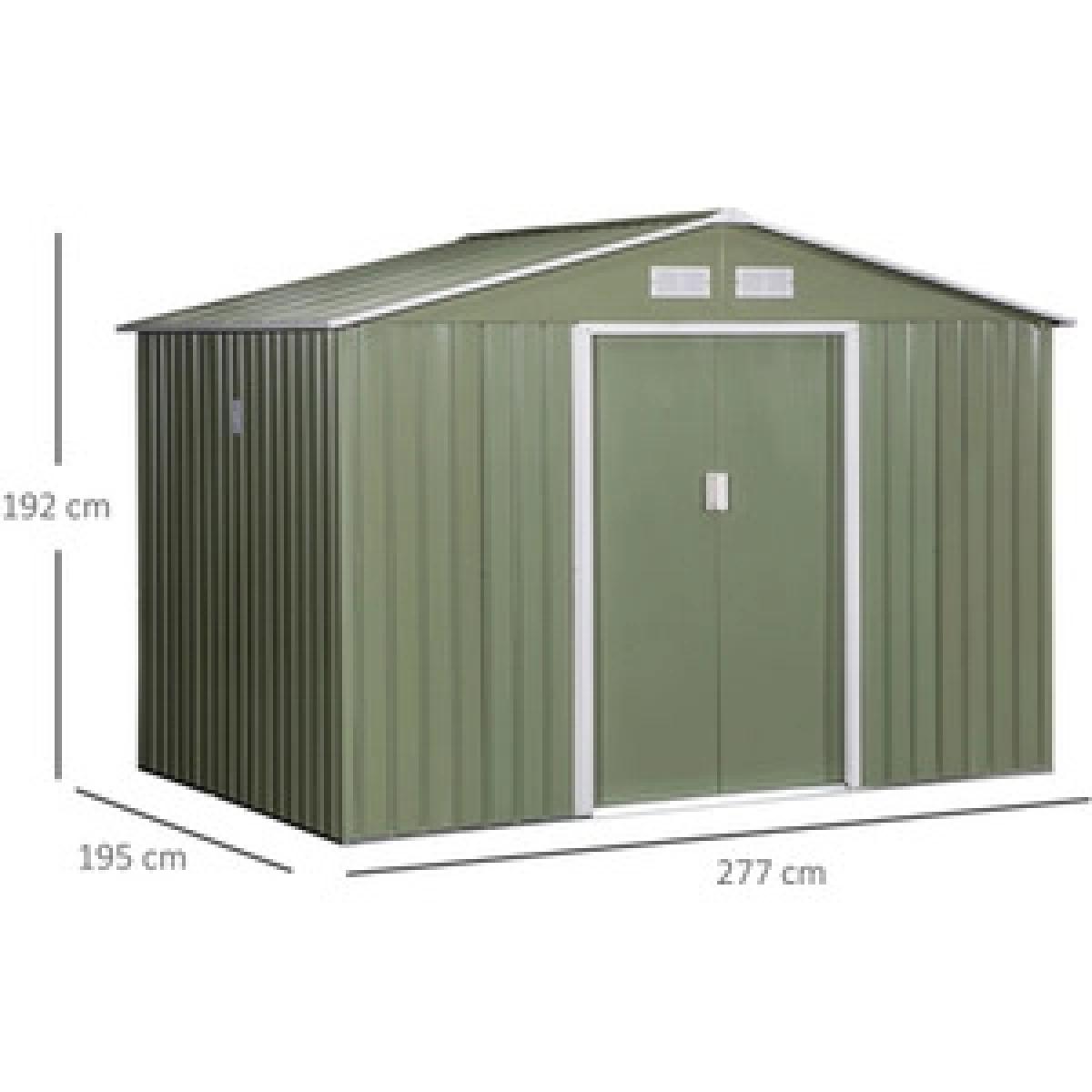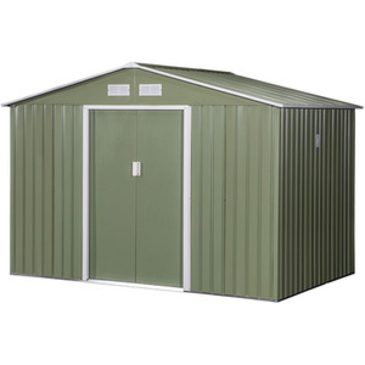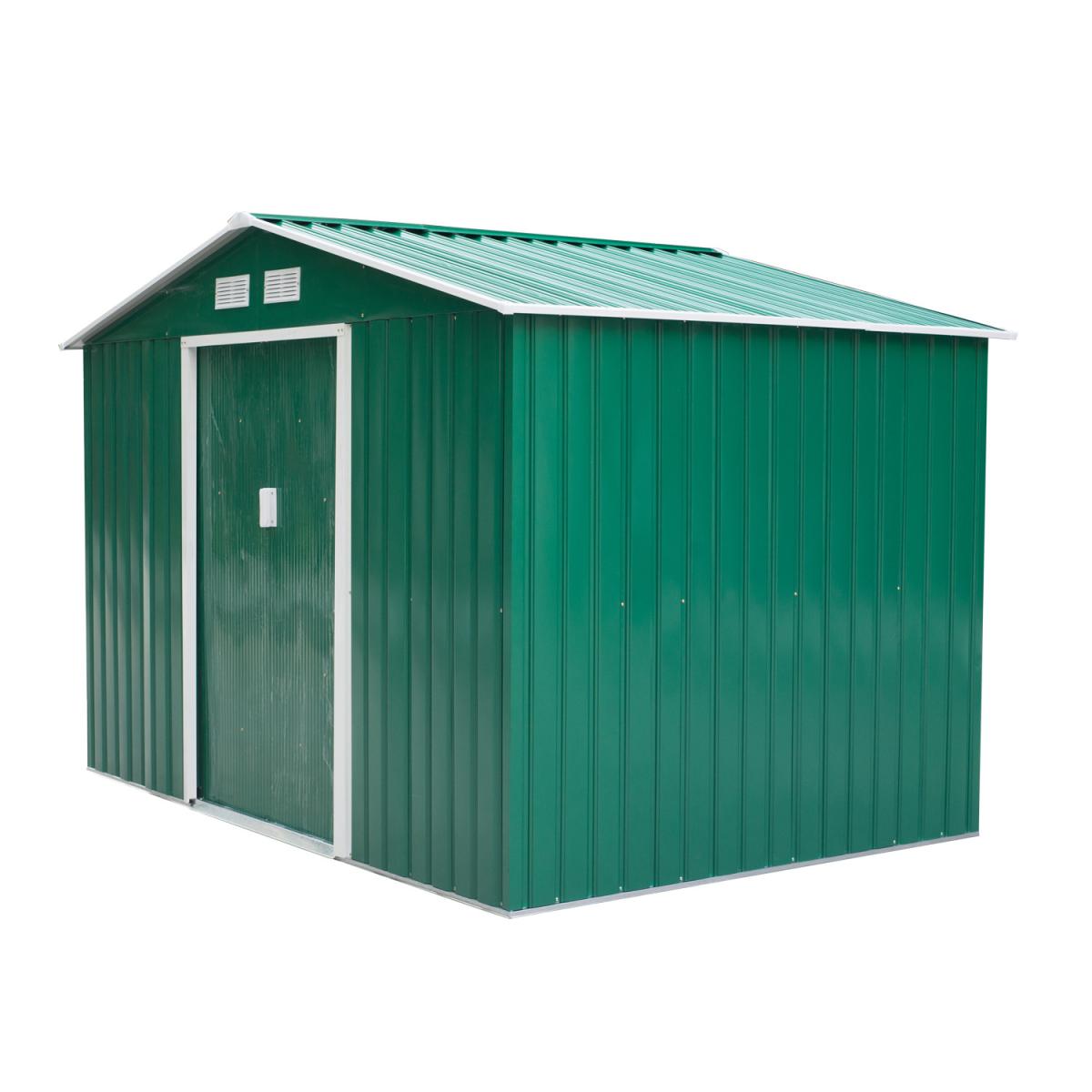 9 x 6FT Outdoor Garden Roofed Metal Storage Shed - Green