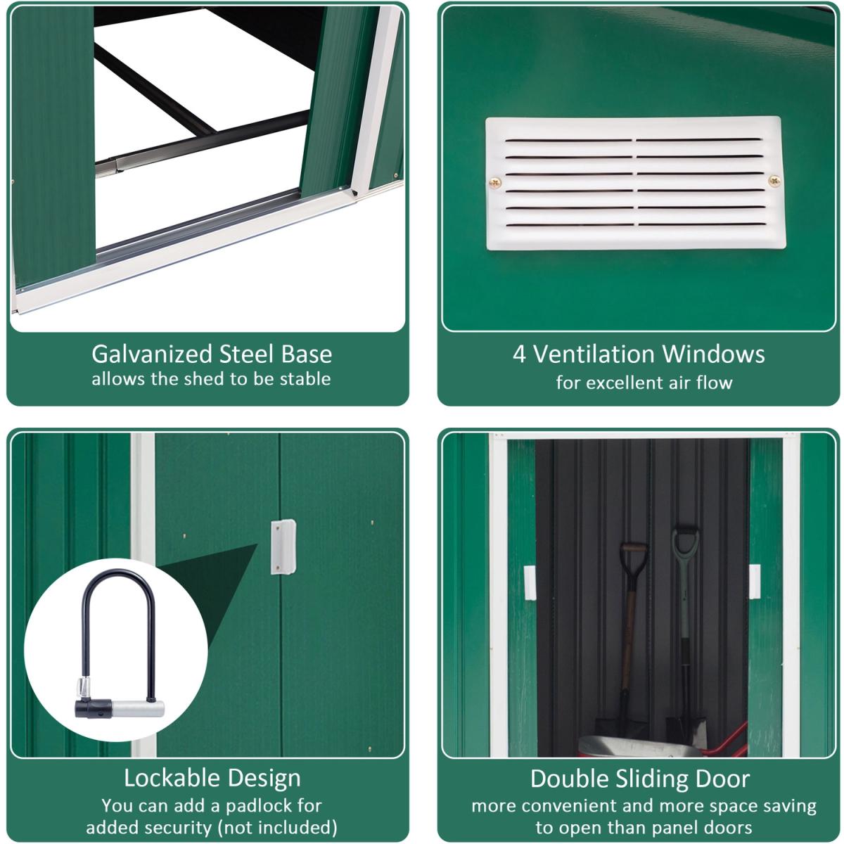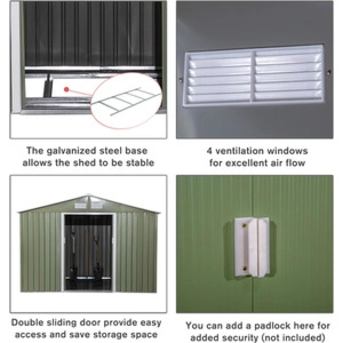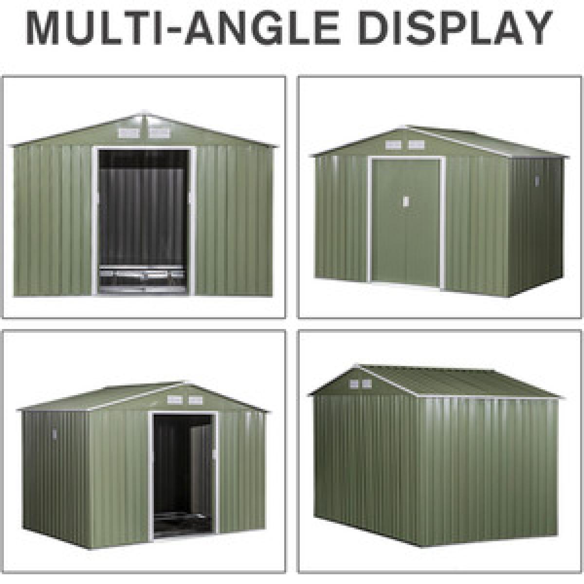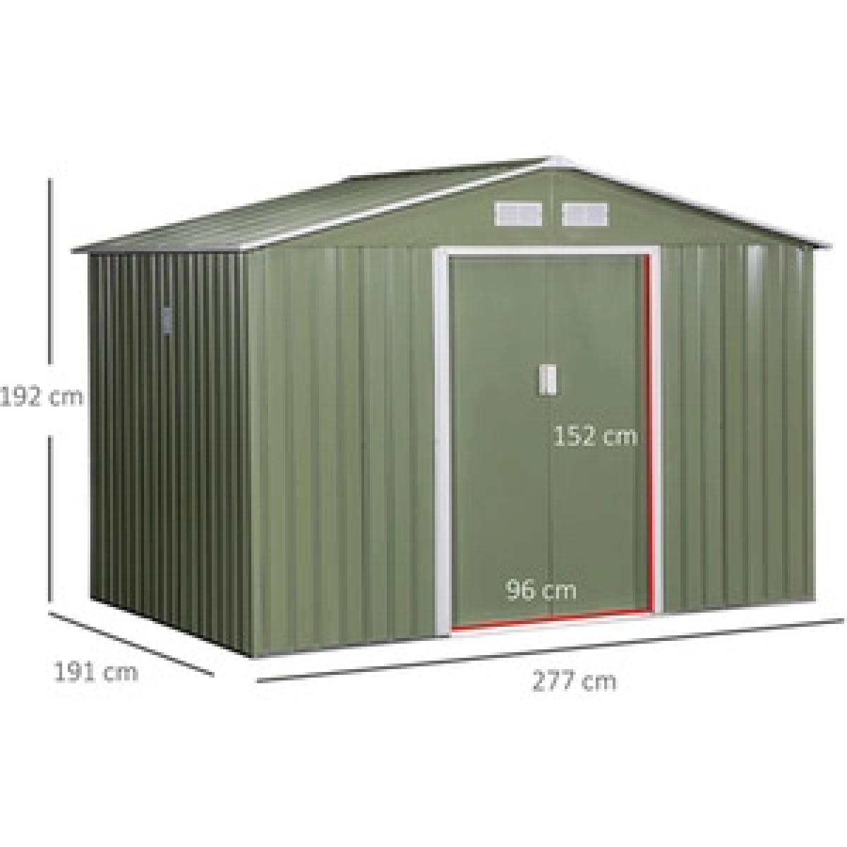 9 x 6FT Outdoor Garden Roofed Metal Storage Shed - Green