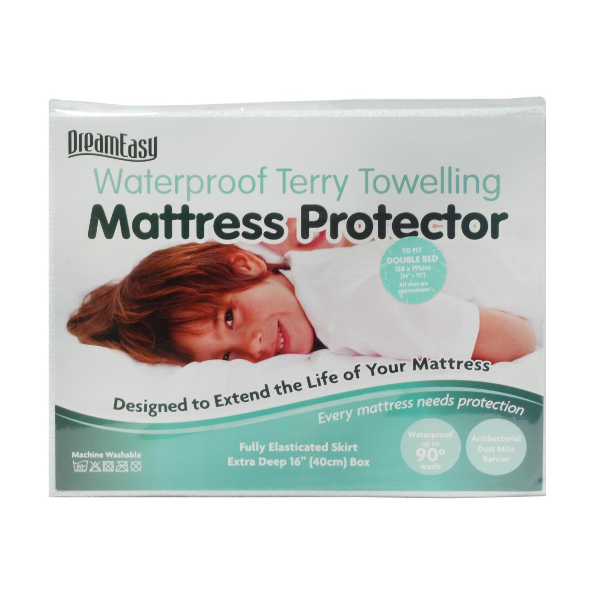 Available in Single, Double, King, Super King, 2'6" Bunk, 4'0". Fully Elasticated Extra Deep Skirt (40cm - 16"). Waterproof up to 90c wash. Antibacterial Dust Mite Barrier. Practical and comfortable to prolong the life of your mattress.