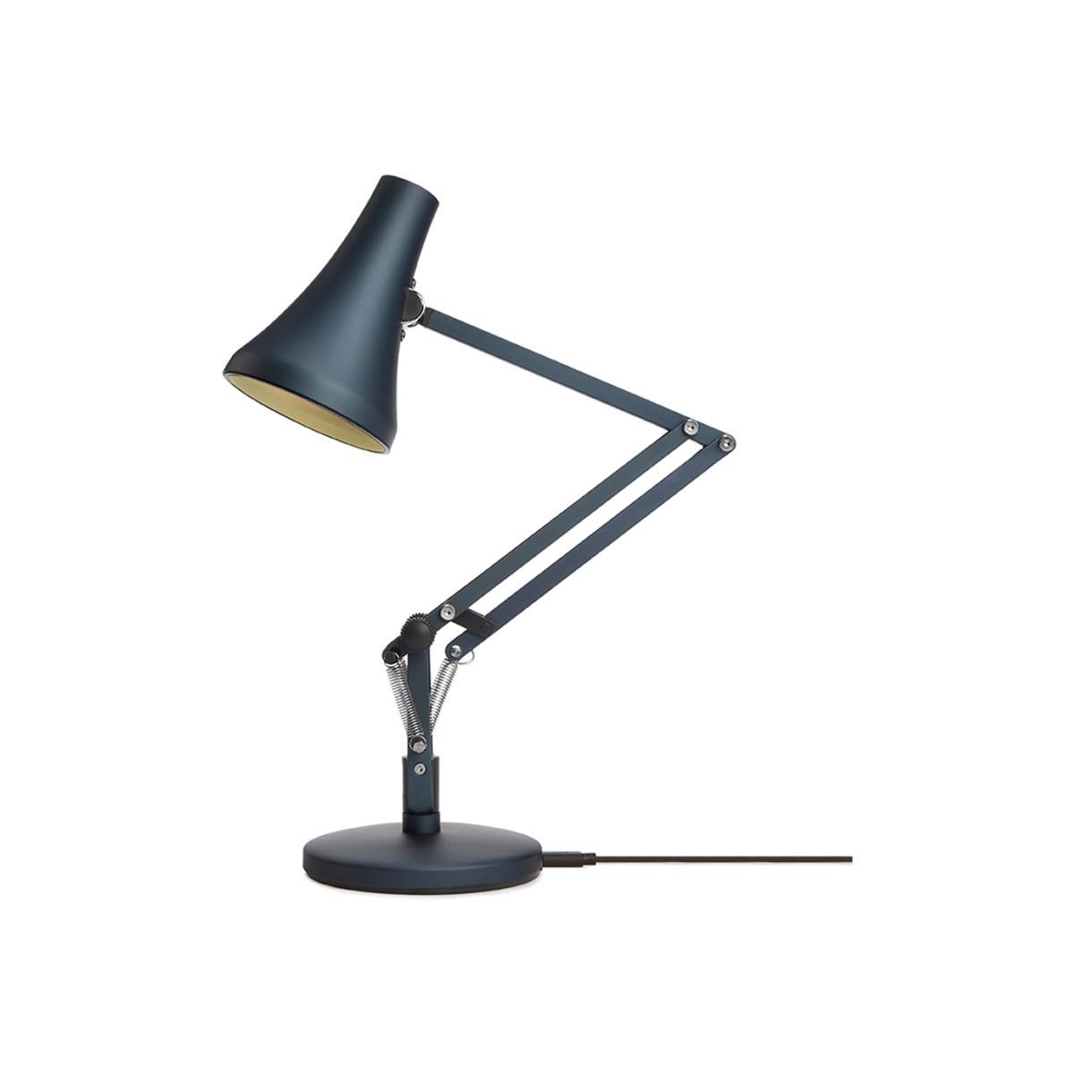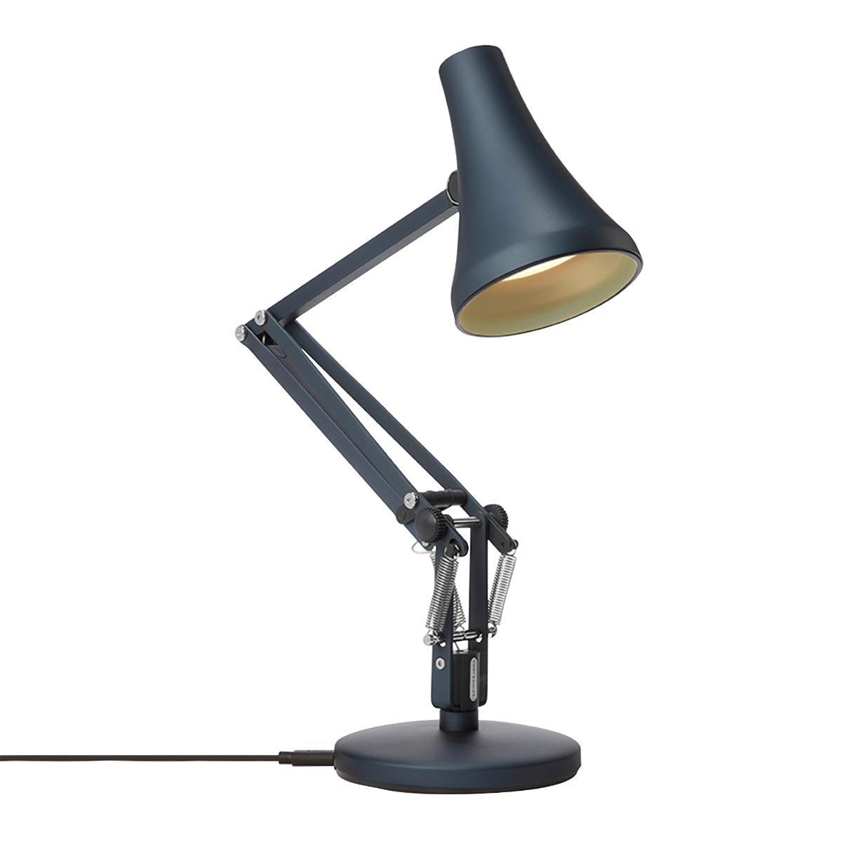 Inspired by the 1970's Model 90, Anglepoise's steel blue 90 Mini Mini Desk Lamp offers superior versatility and portability thanks to its compact shape. Powered via USB for ultimate portability and featuring an integrated dimmable, low-energy LED bulb that will provide focused light for up to 20,000 hours, the 90 Mini Mini Desk Lamp is ideal for accompanying you when working on the go in a low-lit coffee shop or during the evening nestled on the sofa. Crafted from anodised brushed aluminium with a coordinating shade and arms, the lamp is accented with chrome-plated detailing and a cast iron base finished in aluminium. Showcasing Anglepoise's constant tension technology, the 90 Mini Mini Desk Lamp offers impeccable flexibility and smooth movement, for the ultimate reading light with adjustable angles. Perfect for illuminating a workspace or dark corner, the 90 Mini Mini Desk Lamp is a dynamic blend of contemporary twists, such as its matte finish, and a retro aesthetic, paired with the timeless style and faultless functionality of Anglepoise technology. Integrated LED bulb.