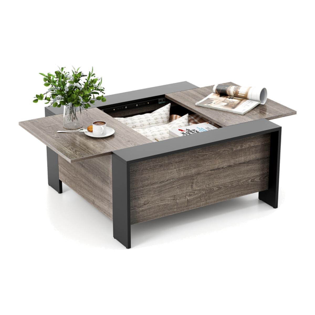 Introducing the versatile & stylish centerpiece for any room - the coffee table. With its 2-way sliding tabletop, this center table effortlessly extends in 2 directions, creating a spacious opening for easy access. Beneath the tabletop lies a hidden storage compartment, allowing you to keep your space clutter-free & organized. With its charming design, this center table adds a fresh touch to any interior, making it ideal for homes, offices & reception rooms alike.