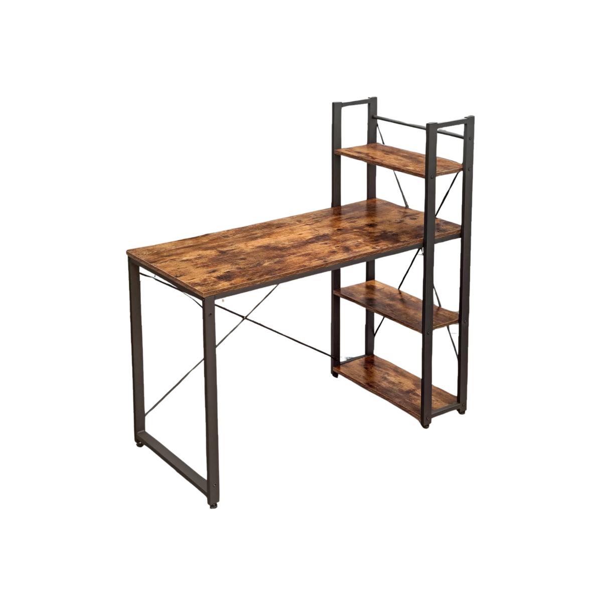 This computer desk features a movable shelf that can be conveniently positioned on either the right or left side, offering customizable configuration tailored to your workspace preferences. Boasting a roomy 56 x 120 cm tabletop capable of accommodating two monitors, along with additional shelving for notebooks, files, and more, this desk ensures all your essential work or study materials are always close at hand. Crafted from sturdy steel and high-quality particleboard panels, this computer desk is built to support up to 50 kg. It not only provides a solid and secure work surface but also ensures reliable durability for years to come. Equipped with adjustable feet, this home office desk effortlessly adapts to uneven floors, maintaining stability and eliminating wobbling during your productive work or study sessions, thereby enhancing your efficiency. Setting up is straightforward with clearly labeled parts and easy-to-follow instructions, allowing you to spend less time assembling and more time enjoying your new desk, complete with a convenient storage shelf.