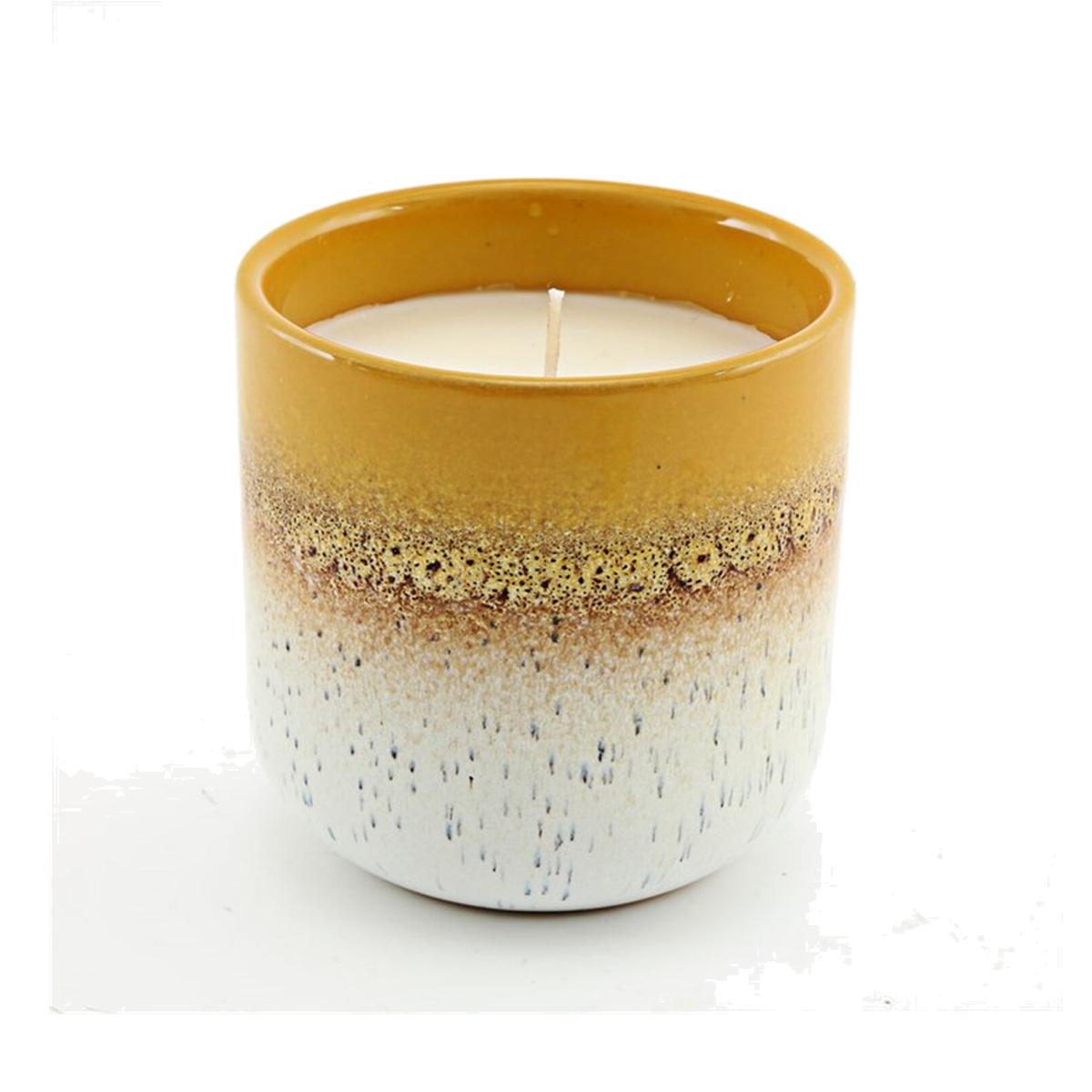 Transform any space into a cosy and inviting atmosphere with this exquisite modern candle. This candle makes an eye-catching decor piece that will elevate the style of any room and uses a reactive glaze technique that creates a stunning, one-of-a-kind finish in a vibrant yellow hue.