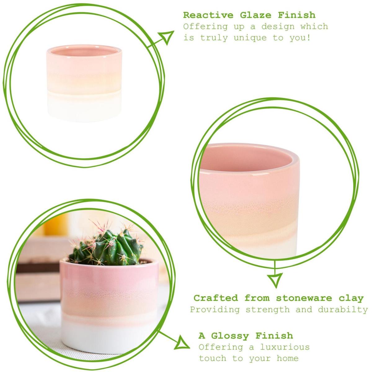 Give your potted plant pursuits the showcase they deserve with our range of Nicola Spring Reactive Glazed Plant Holders. Create one beautifully botanical oasis in your home, with a range of styles, sizes, and colours to choose from! Crafted from stoneware clay, these holders are designed to withstand the rigours of a busy household. Each holder has been carefully hand-glazed, producing a beautiful ombre pattern. This is formed through the process of a chemical reaction during firing, offering up a stunning organic design, with a gorgeous glossy finish, meaning each pot's design may vary and will be truly unique to you! From home-grown herbs to hibiscus, these plant pots will make the ideal home for your earthy endeavours.