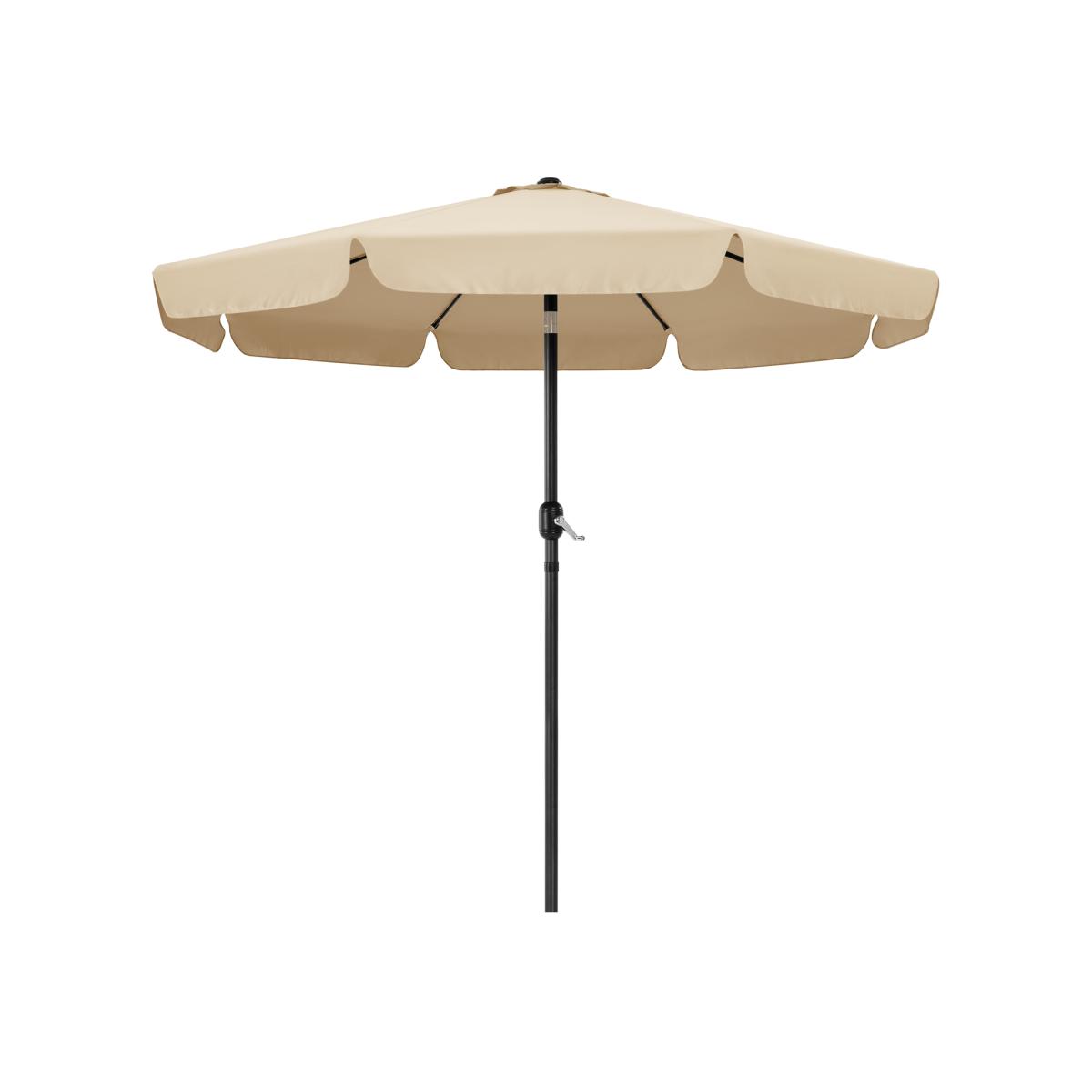 You are looking for a practical home living camping outdoor umbrella for 4-6 family members and friends to enjoy a sunny, breezy outdoor get-together? This 2.7m parasol is designed to meet your needs. The canopy offers a cool shade for a 42" to 54" table, covering 4 to 6 chairs or 2 pool loungers. The crank on the pole allows you to open or close the canopy independently. The push button allows the canopy to tilt according to the different angles of the sunshine in the day. We adopt 180g Polyester and powder-painted iron to craft this umbrella, which is durable, weather-resistant, and more importantly, anti-water and UV. With the protection of the surface treatment, the iron part can be kept as good as new without paint-shedding after prolonged use. Compared with our classic minimal design, this upgraded vacation style umbrella comes with a sagging surrounding rim on the edge of this canopy, adding a touch of the beauty of ease and a relaxed atmosphere to the umbrella, making it extra fitted for the romantic garden, eyeful beach, or deck, poolside, caf and restaurant.