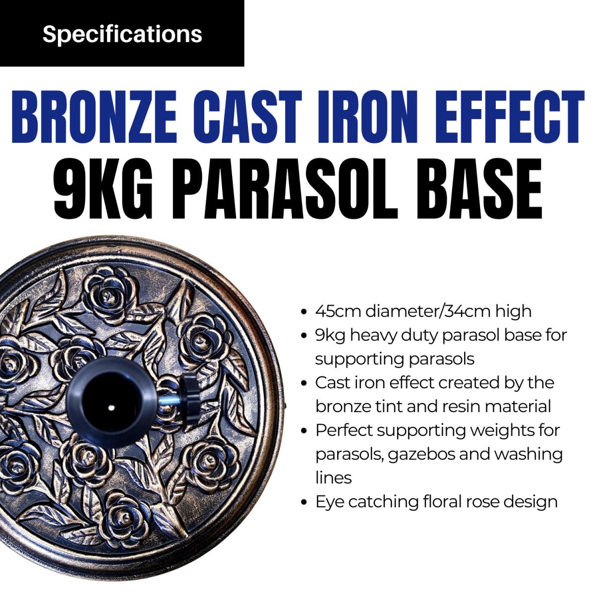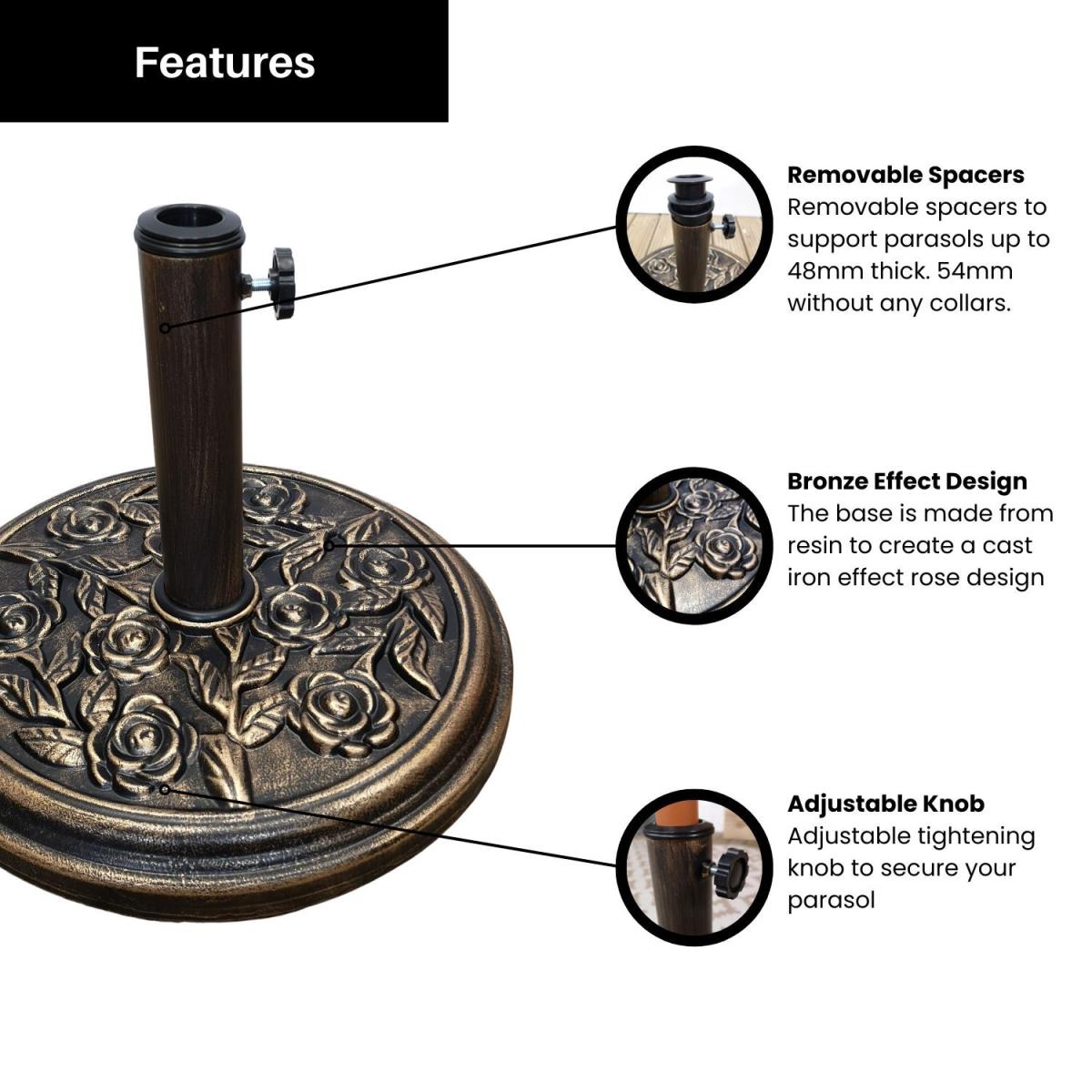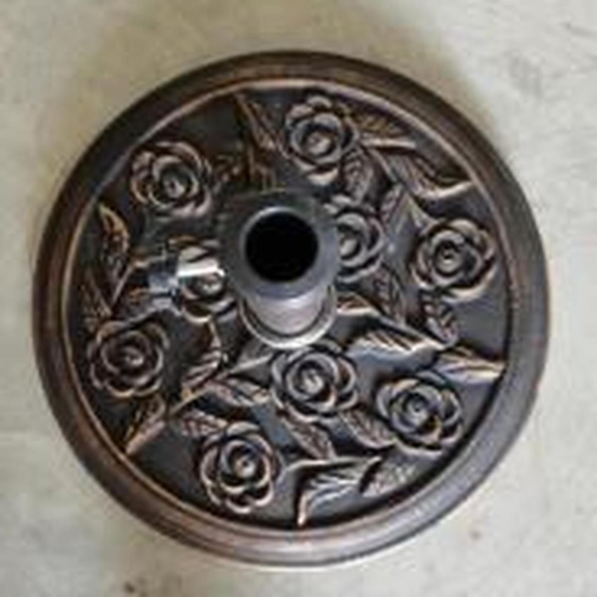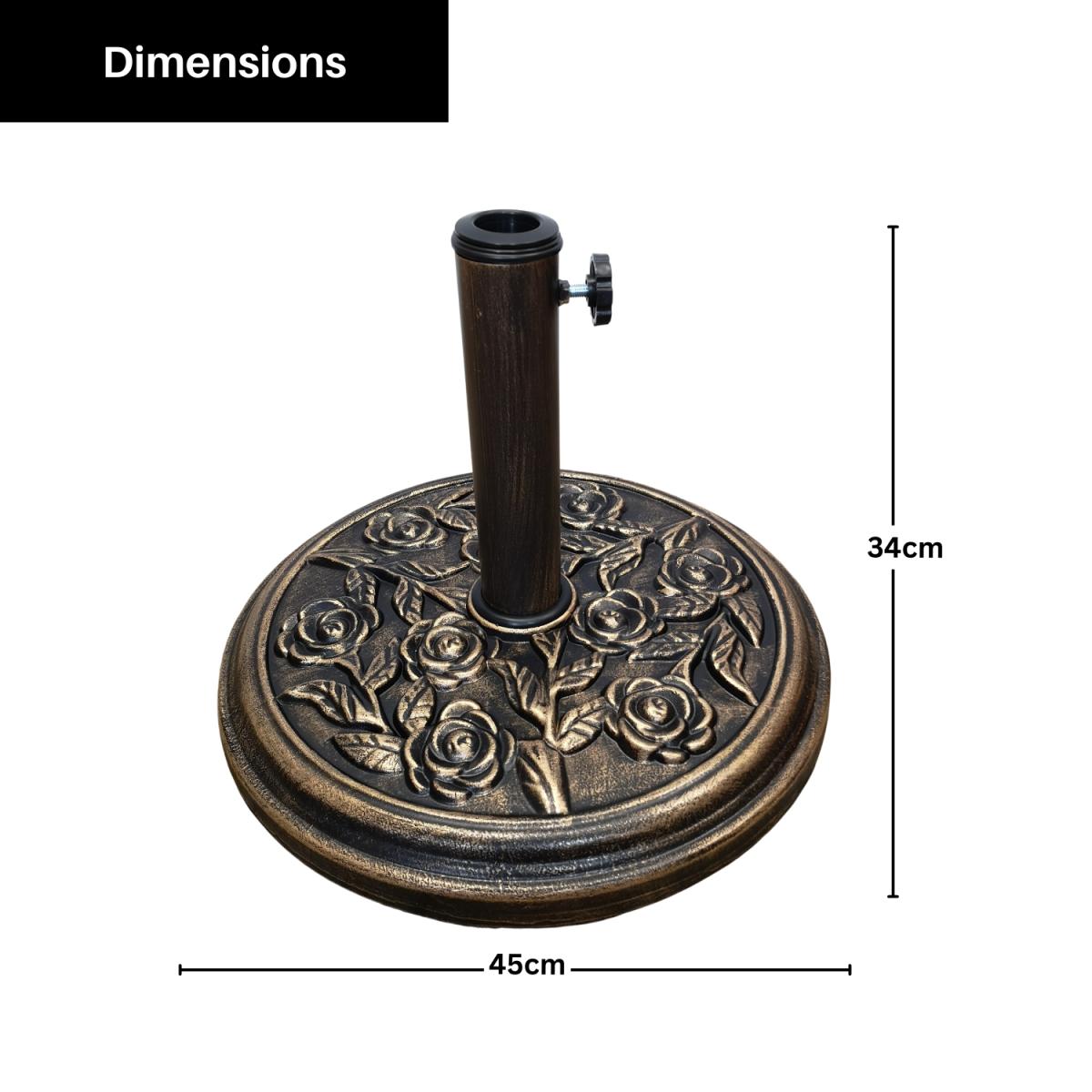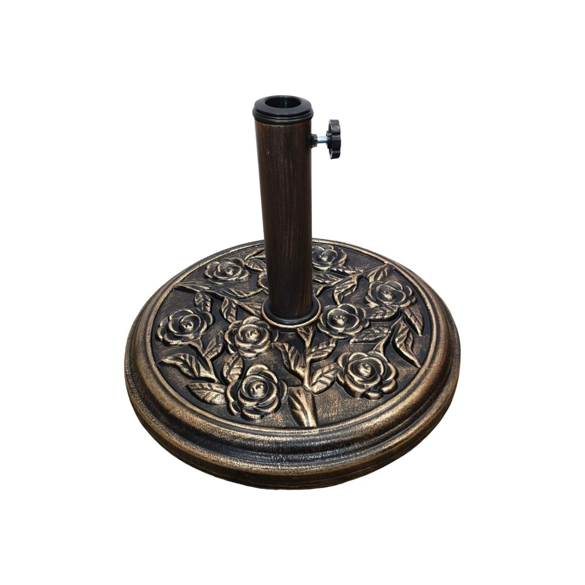 9kg Bronze Cast Iron Effect Garden Parasol Base Weight with Rose Design - Brown