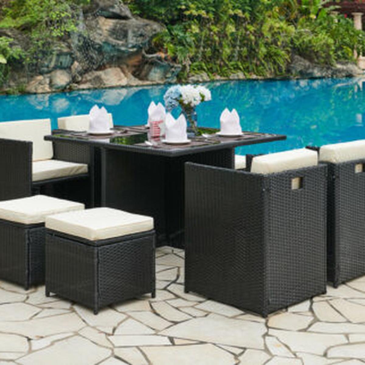 9PC Rattan Cube Dining Set Garden Furniture - Black