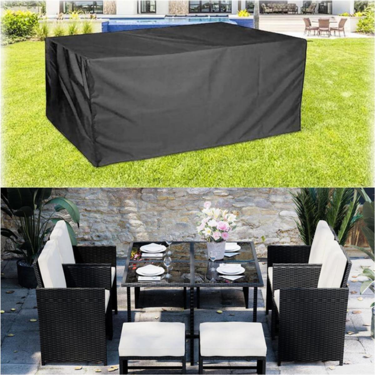9 pcs rattan garden furniture set is perfect for your garden, lawn, patio, conservatory area, etc. Exquisite and detailed rattan design that ensures your outdoor table stability. Made of hydrophobic material and double bound edges, with upgraded solid two-thread stitching, gives full protection for the cover from cracking. The inner layer has a silver coating, UV-resistant design provides exceptional protection under sunlight. It contains in-built weatherproof properties that enable it to withstand outdoor weather. Extremely strong, rattan PE wicker furniture is stylish and lasts for many years.