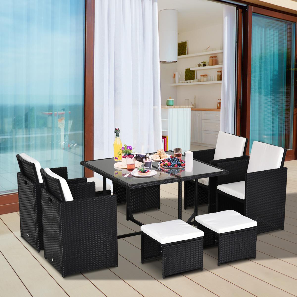 This rattan garden sectional furniture is constructed from a high-quality metal pipe and durable PE rattan in excellent manufacturing for all year round use. Cushions are filled with thick cotton for offering a high degree of comfort. The cushion cover is washable. No. 3 zippers are assembled for smooth opening and close. The tabletop is assembled with 5mm tempered glass which is easy to clean. An anti-UV explosion-proof membrane can withstand temperatures up to 80 degrees Celsius. The film is firmly bonded to the glass and can be used for 2 years. When the glass breaks, the fragments do not fall off the film.