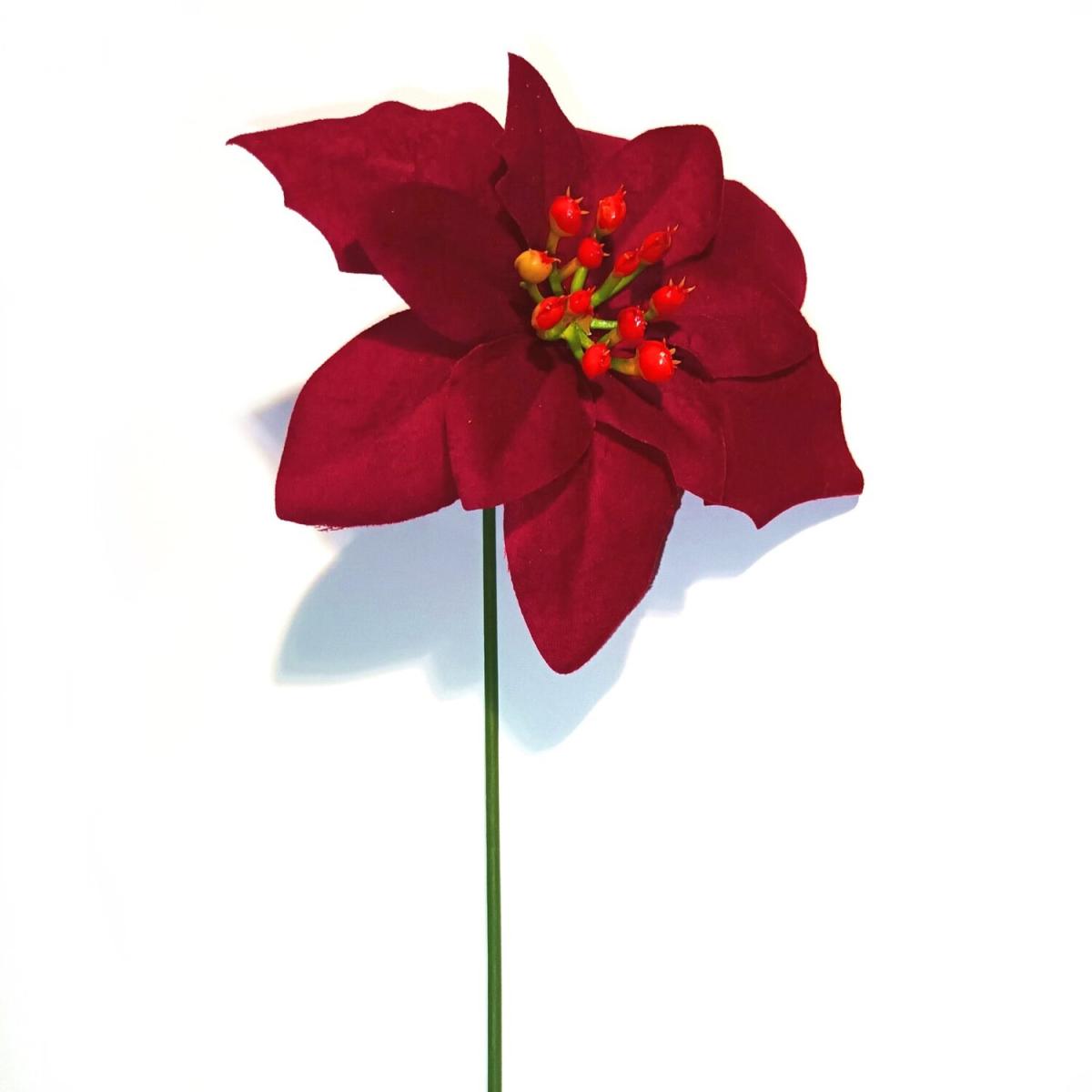 These lovely Artificial poinsettia picks, measure 18cm tall with the stems and have 12cm red flowers. Perfect for faux flower craft projects, Christmas decorations, gifts and flower displays in lobby areas, hallways, living rooms and entertaining areas.