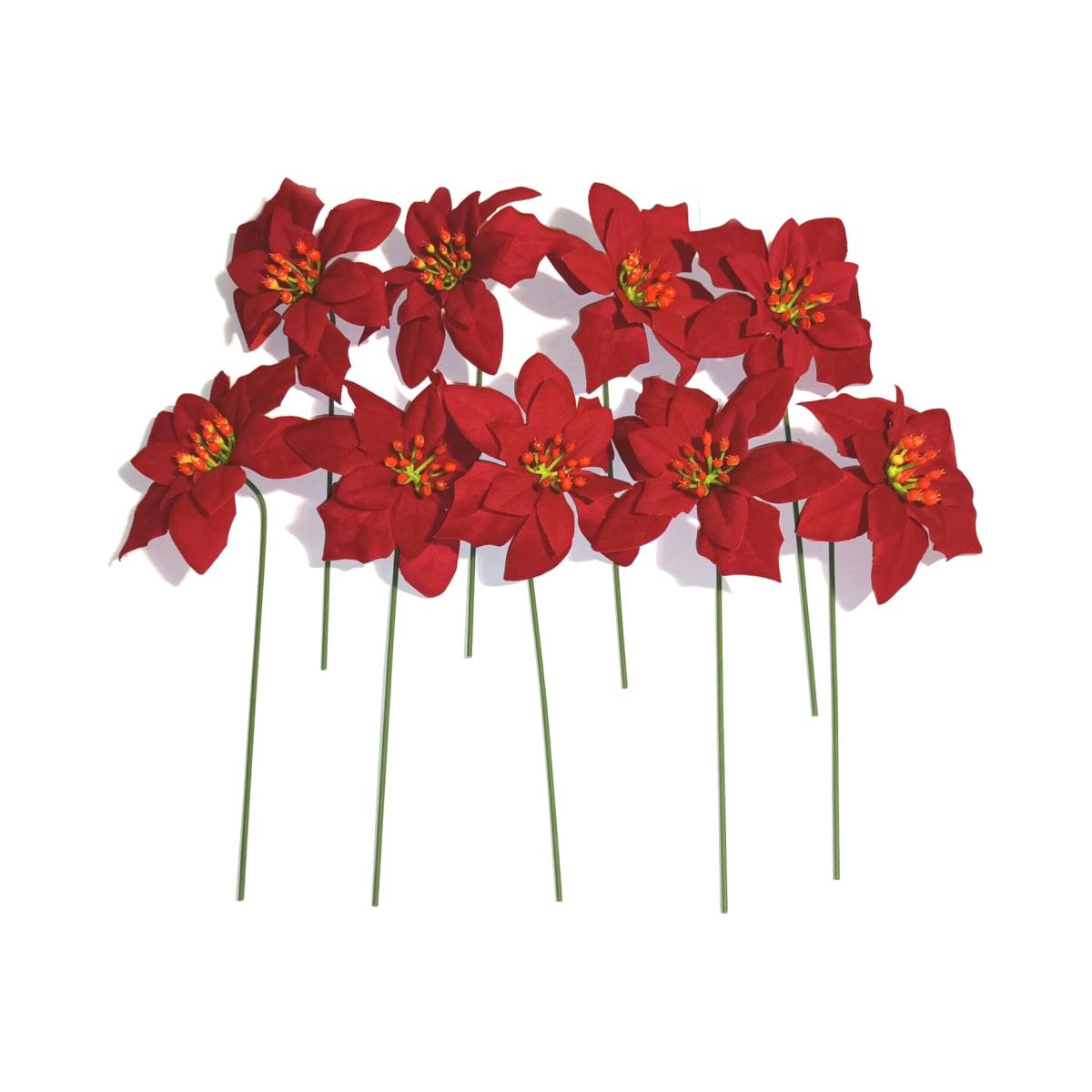9Pk Artificial Red Poinsettia Flower Pick Decorations - Velvet - Red