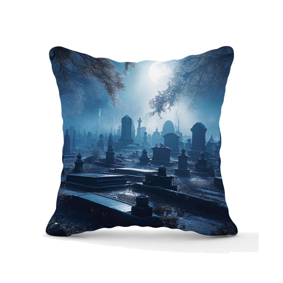 A Breathtaking Scene Of A Moonlit Graveyard Outdoor Cushion - Blue / 60cm