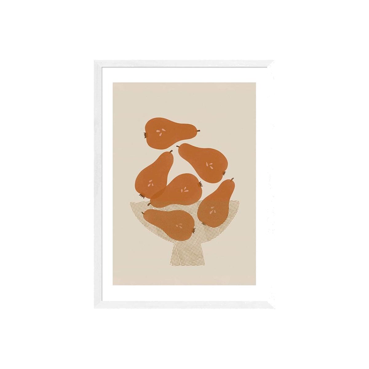Encourage one-of-your-five-a-day with the Bunch of Pears Art Print. In a bold graphic style with a subtle colour palette of cream, taupe, and brown that will add instant life to your kitchen. Only giclée printing processes are used for this print resulting in the highest quality museum-level colours and sharpness. Choose between a number of different coloured frames and three sizes for the perfect print for your space.