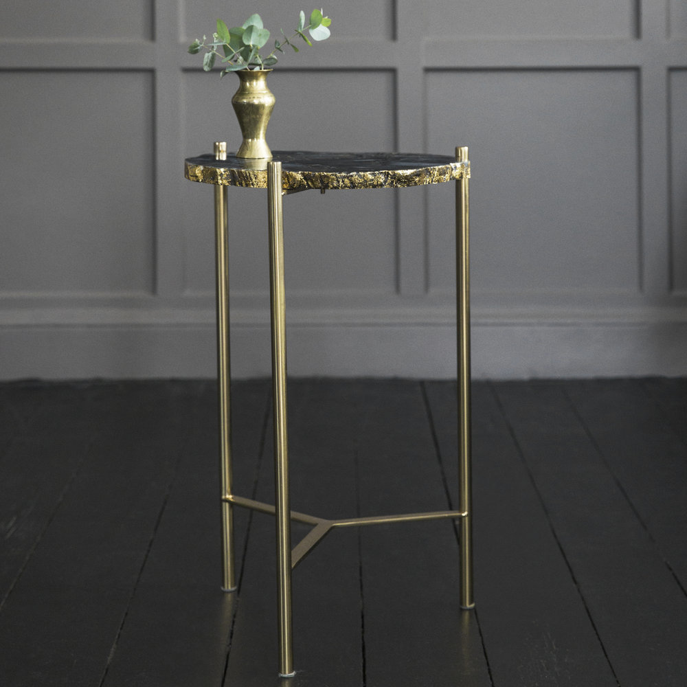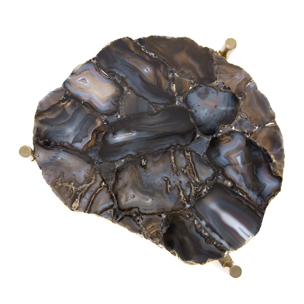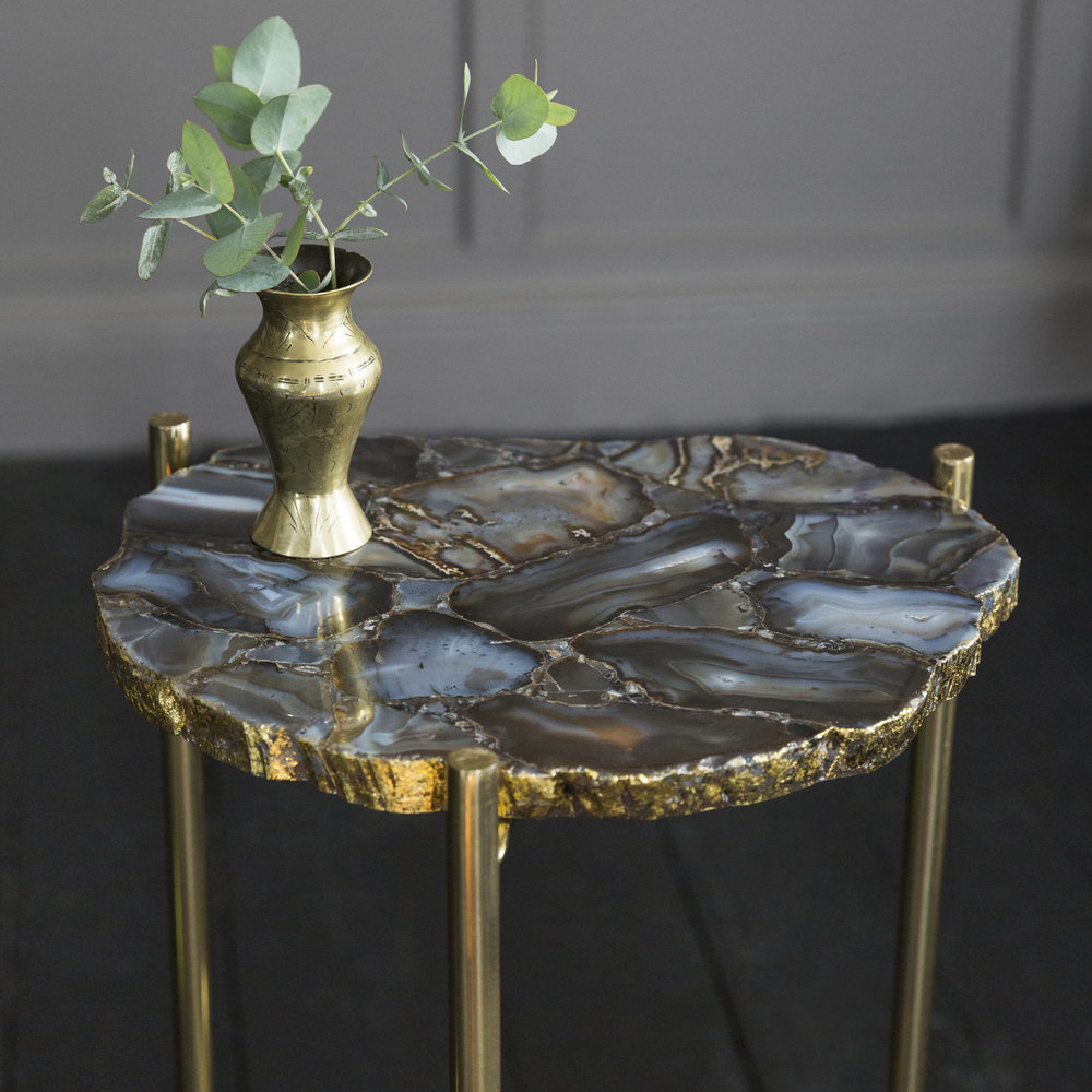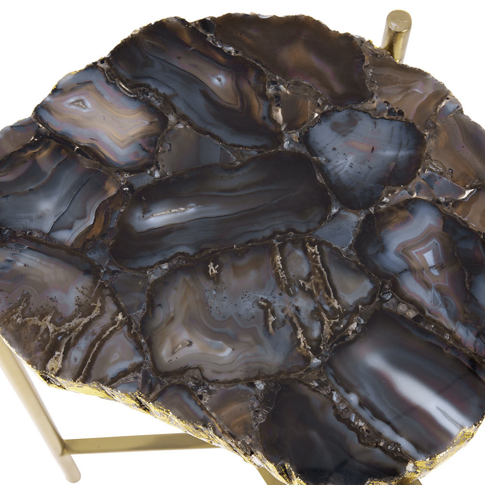 Add wow factor to your home with this agate slab side table from A by Amara. Equal parts rustic and decadent, this table is topped with an agate slab for a touch of intrigue wherever placed. On a tripod base of brass coloured steel, it is stylish yet striking and is exclusively available at Amara.