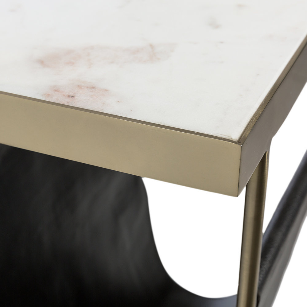 Combine elegant style and handy storage with this side table from A by Amara. Topped with cool white marble, it has a shining brass coloured frame which will add a dash of luxe to any room. An integrated black leather pouch makes it perfect for storing books and magazines too. A must for your reading nook.