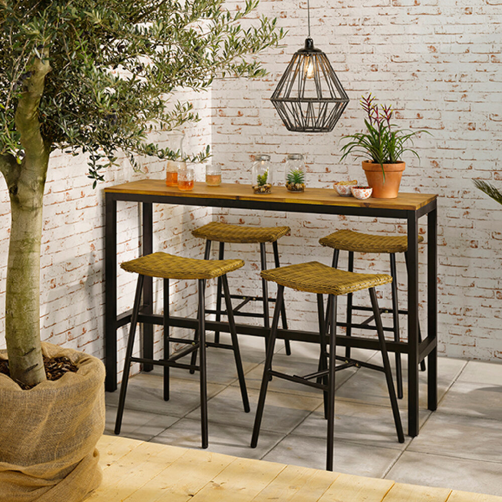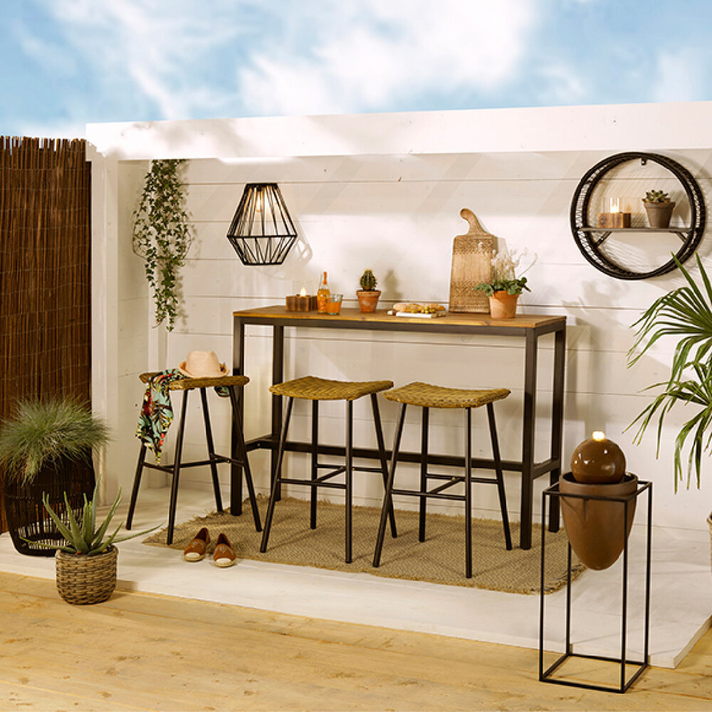 Al fresco entertaining has never looked so good. Strong and sturdy, this outdoor bar stool is made from durable iron with a natural wicker seat. Ideal for drinks in the sunshine, it’s perfect to pair with the complementing bar table available separately.