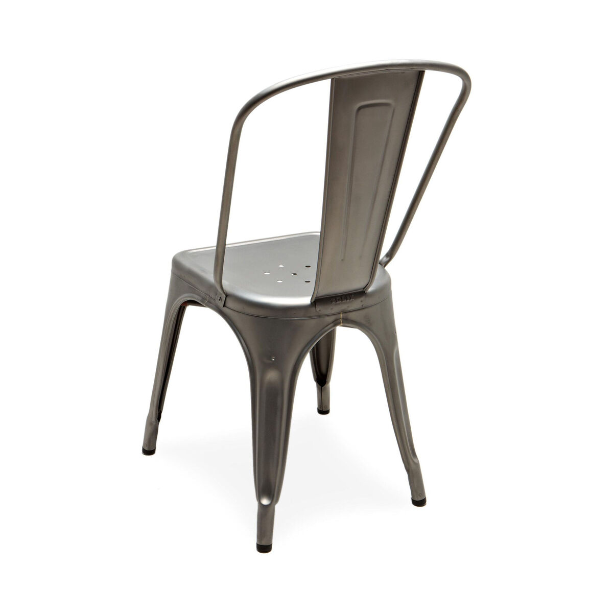 The A chair, an icon of industrial aesthetics for almost a century, has made it with its 1930's - 1950's design through all times and styles, and become a classic in our collective memory. Incredibly popular since 1934, this chair has even been in collections in Design museum, MoMa and Centre Pompidou. What an honour and international success of this ″living heritage″, which is an illustration of French art of living! The A chair is not only solid and extremely light, but also stackable and space-saving. Its uncluttered but also practical look is the key to such success. It was present on the liner Normandie already in 1935 and on pathways in front of the International Exposition of Arts and Technology in 1937, and in a number of terraces and café in the fifties before finally getting into domestic settings. The metal Tolix chair has significantly marked the history of design. All the credits go to Xavier Pauchard, its designer, who used metal sheets and zinc for the first time in order to produce series of furniture, which makes the Tolix chair the first industrial French chair. Nowadays, the company employs high-performance-machines that are of help during numeral manual operations. Every single chair is thus unique and has a Tolix signature. Tolix has certainly deserved the label ″Company of living heritage" from the French Ministry for Economy, Finances and Industry in 2006. This version of the A chair draws attention to the natural look of metal. It is made of raw stainless steel sheets with a matt velvet transparent varnish. For indoor use only.
