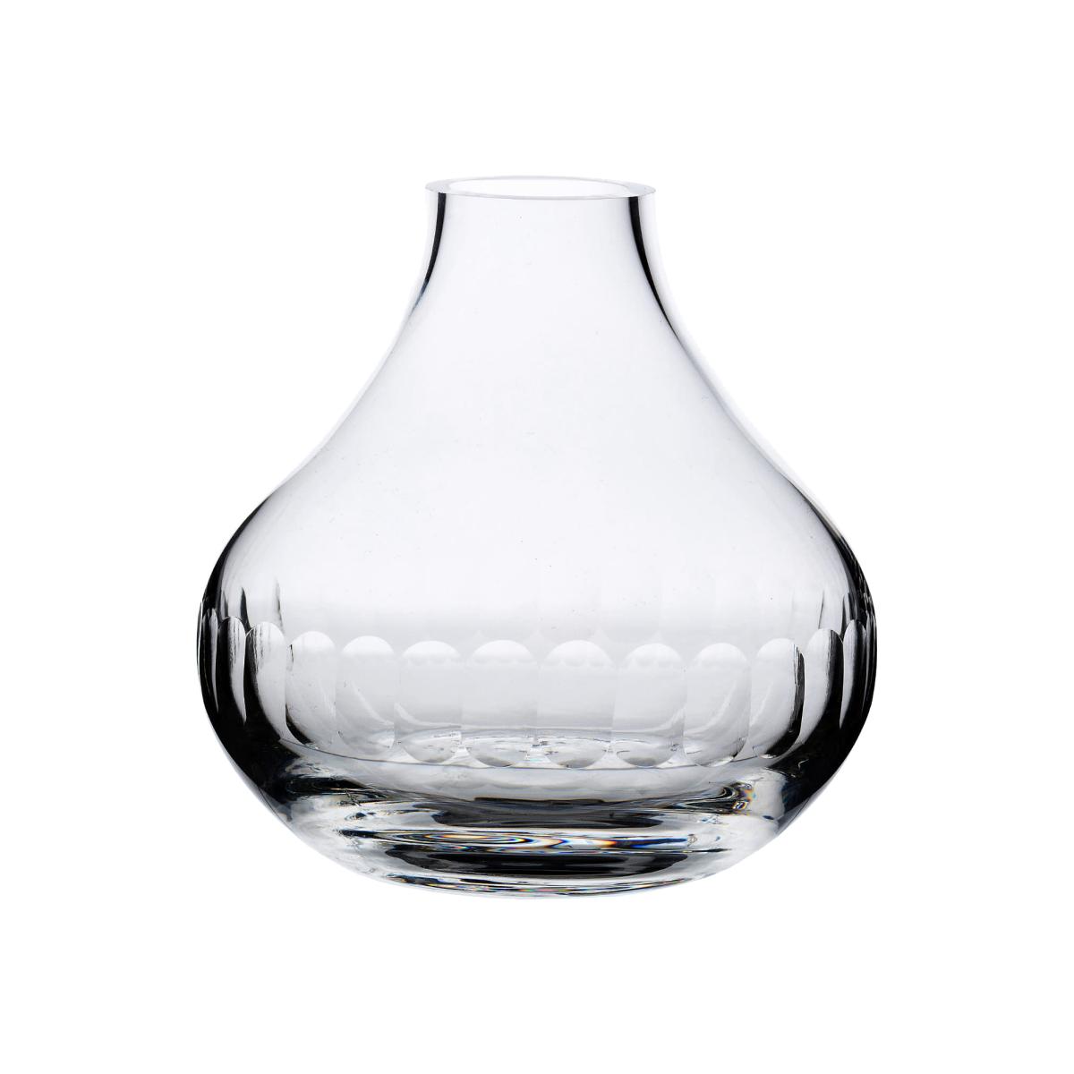 A classic design of engraved lens. Each vase has been hand-blown and hand-engraved. Our vases are made from fine crystal. All of our glassware is dishwasher safe.
