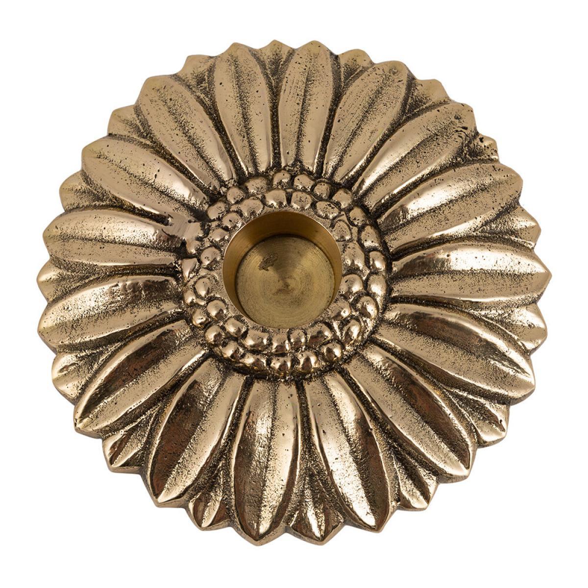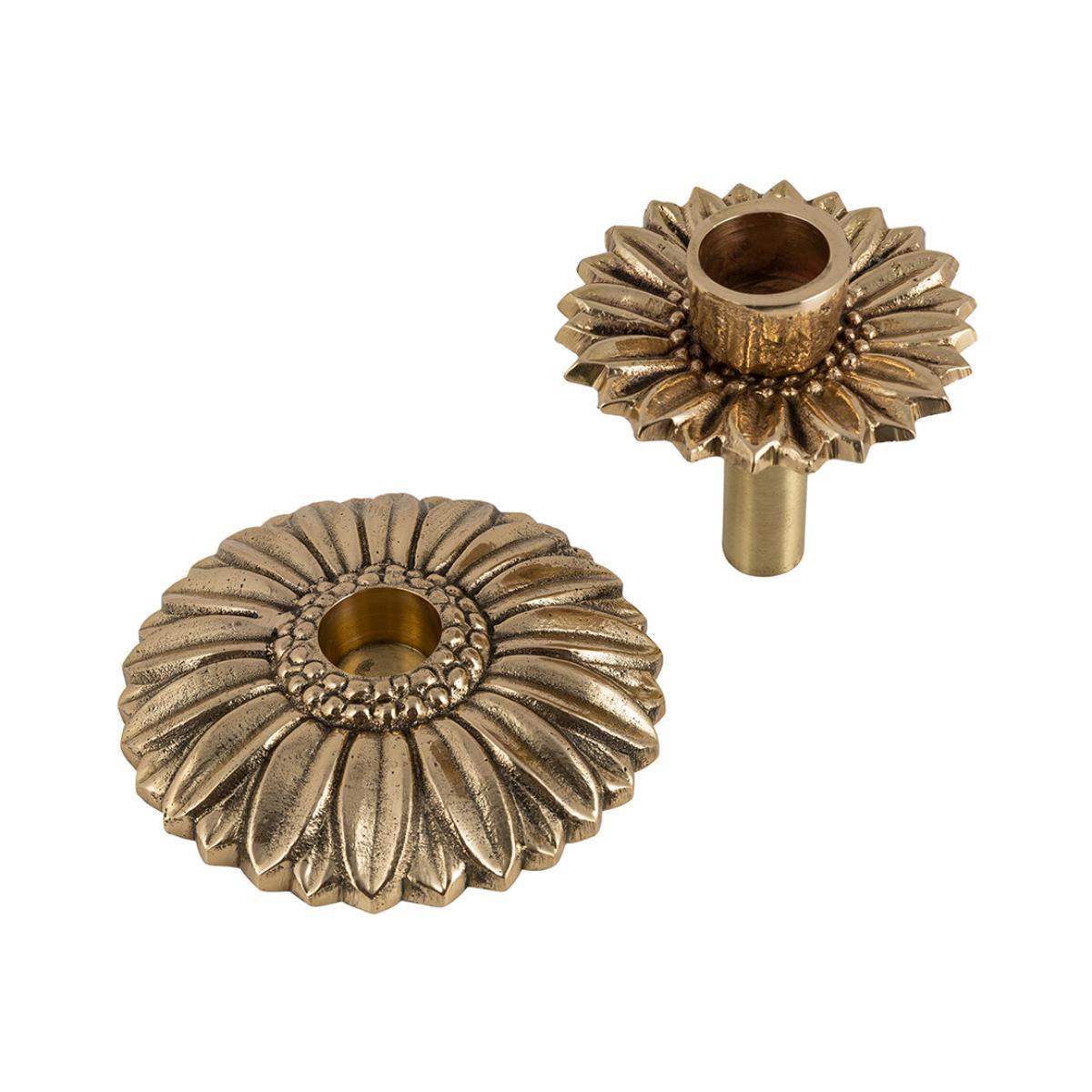 Bring blooming marvellous design into your home with these candle holders from À la. Expertly handcrafted from recycled brass, each features a charming daisy motif in an antique gold finish.