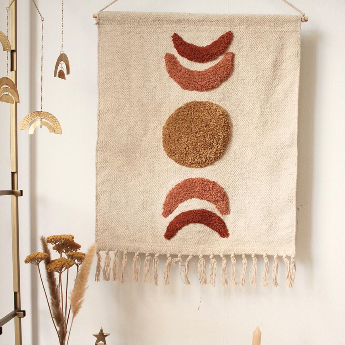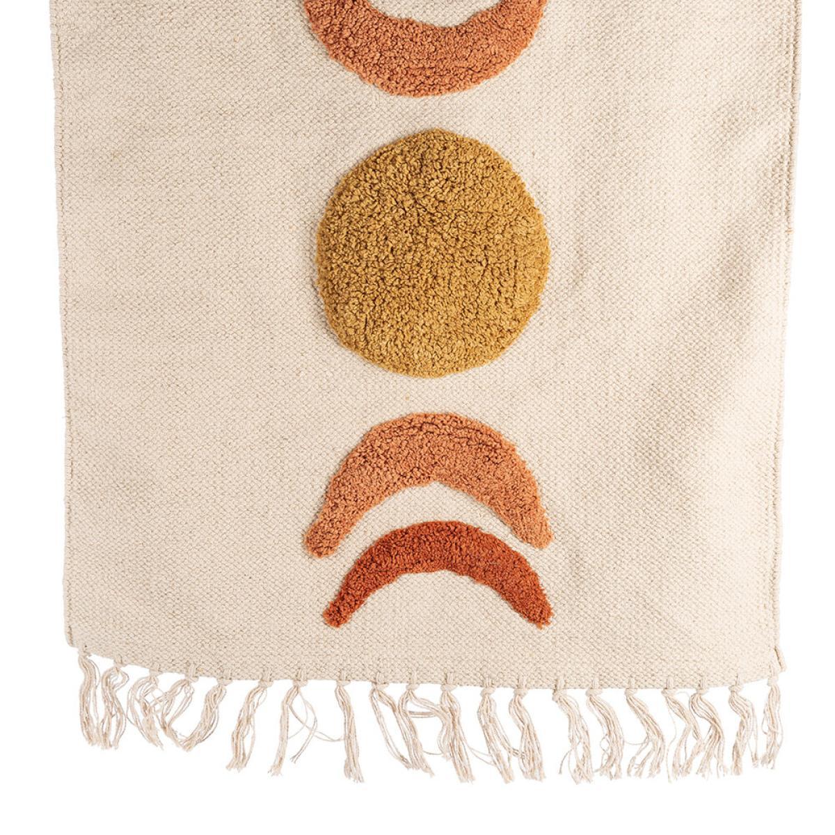Give your interior an instant refresh with this wall hanging from À la. Expertly handcrafted from tufted cotton in an off-white finish, it is adorned with a charming moon phase design in warm earthy tones.