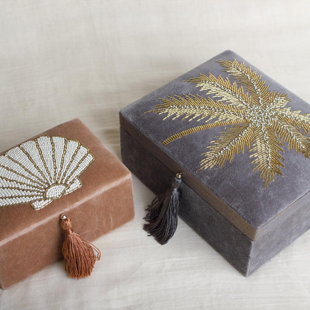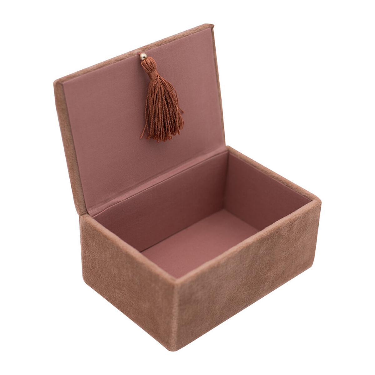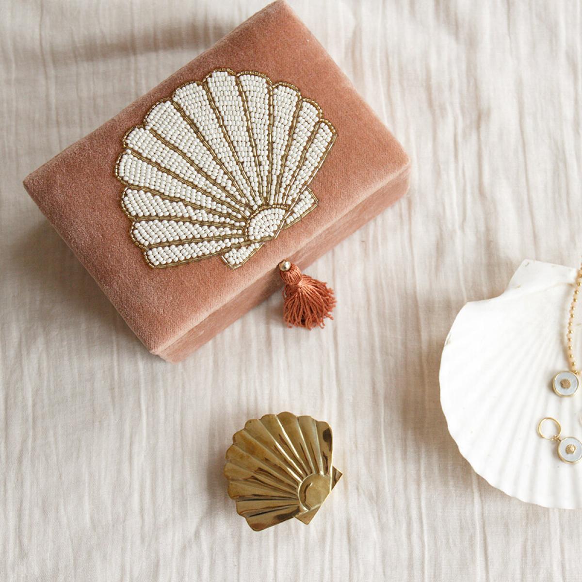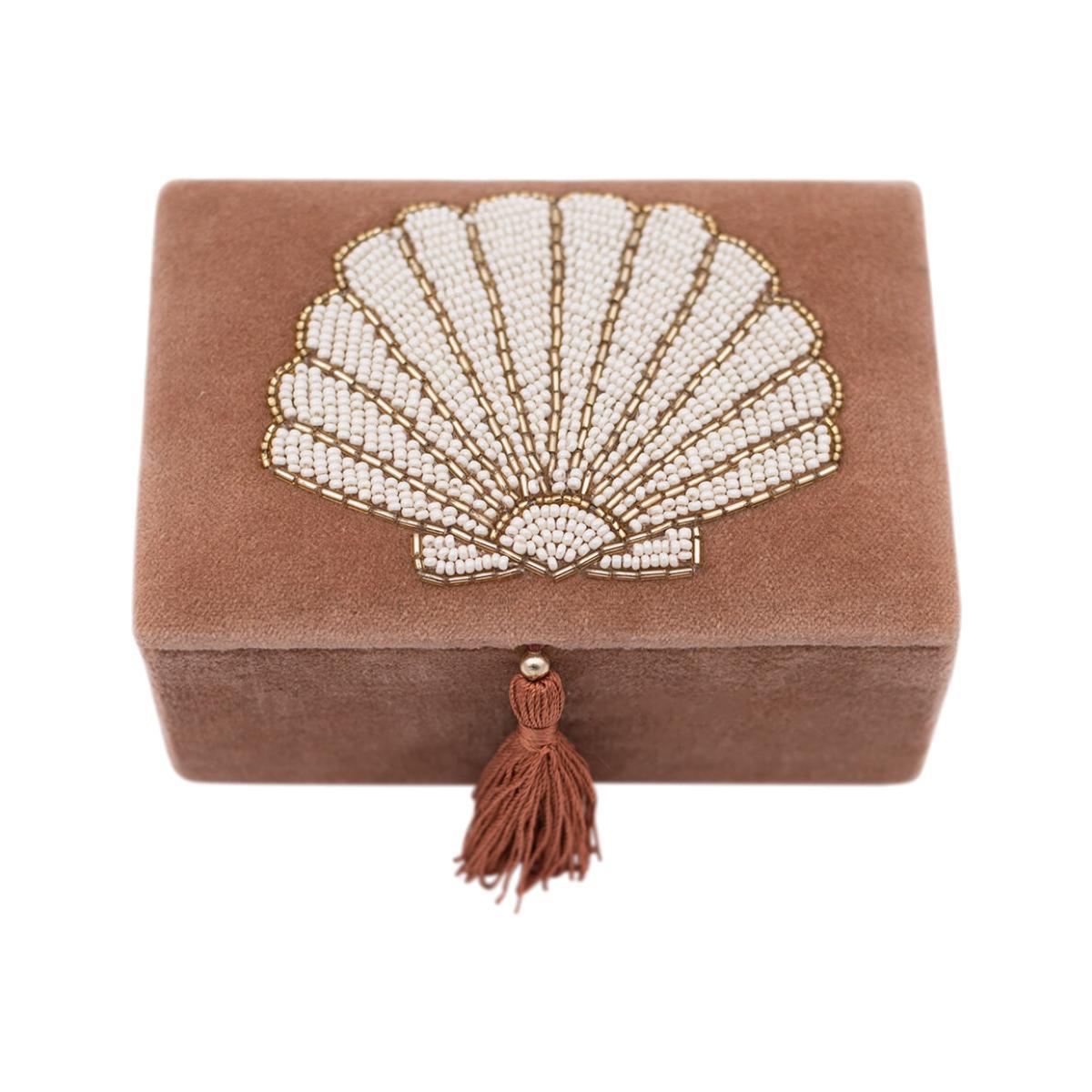Keep your treasures safe with this trinket box from À la. Made from soft cotton velvet, it is pink in colour with beaded shell detailing. Finished with a tassel closure, it's the perfect addition to your dressing room. Key features: * Trinket box * Material: cotton velvet * Dimensions: 15x10x7cm * Soft pink colour * Beaded shell detailing * Finished with a tassel * More decorative accessories available from À la