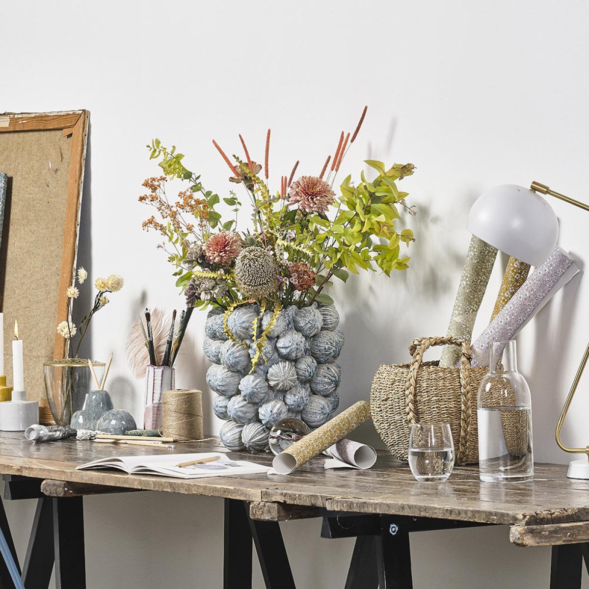 Add unique style your living space with this Melfi vase from A Simple Mess. With a tactile surface taking inspiration from nature, it’s been finished with a unique reactive glaze. With light blue shades it will complement your favourite artificial blooms and look great in any space. Please note that the glazing means that the vase cannot be guaranteed 100% waterproof, do not place the vase directly on delicate surfaces that cannot withstand water or moisture.