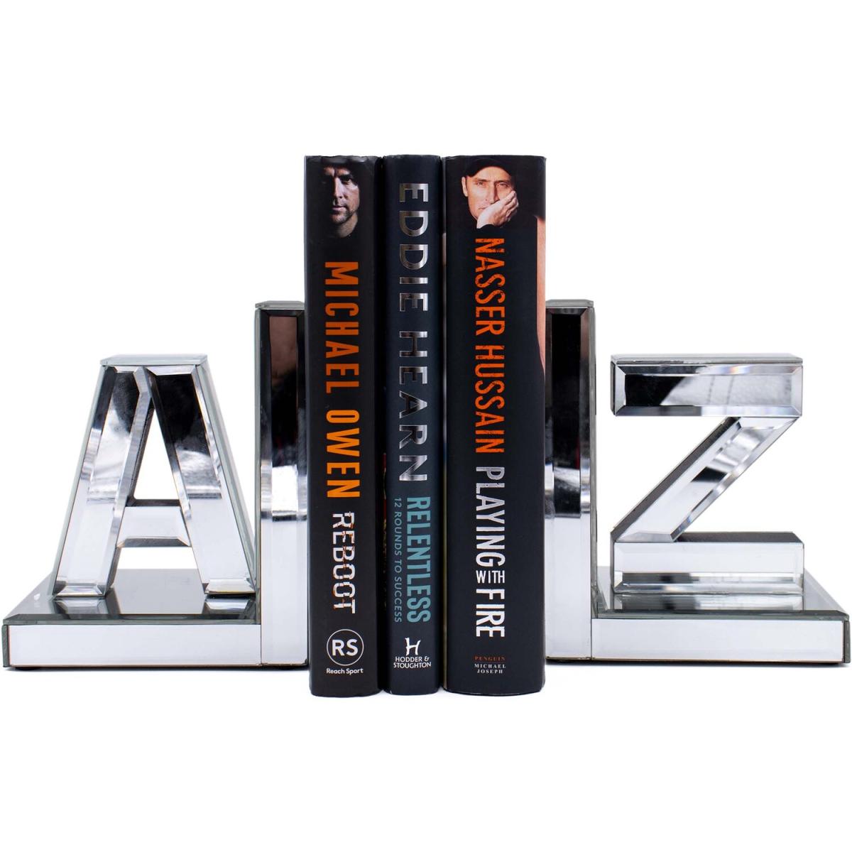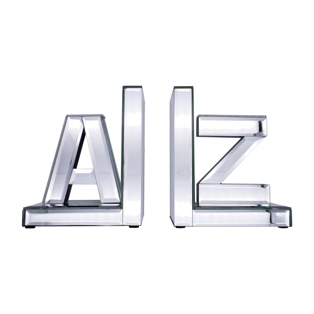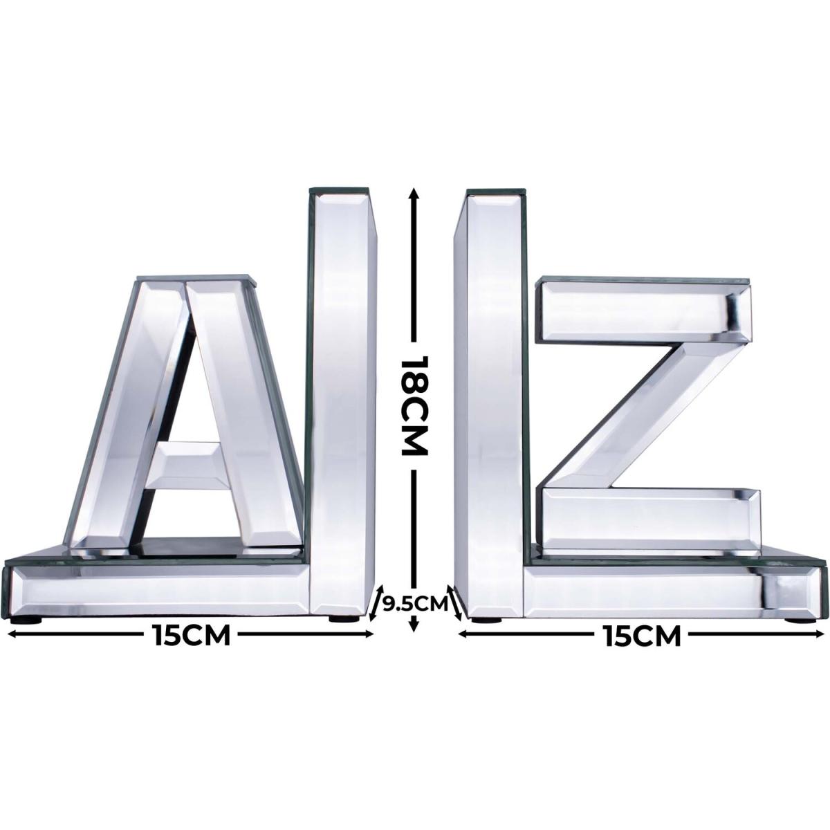 A-Z Mirrored Glass Based Book Magazine Bookends - Silver