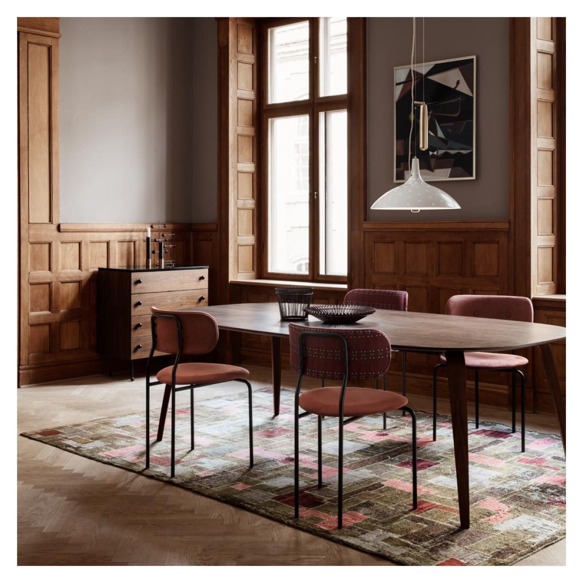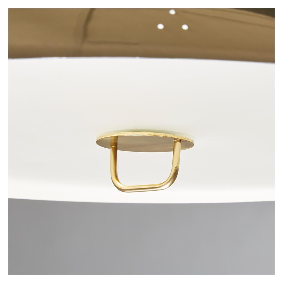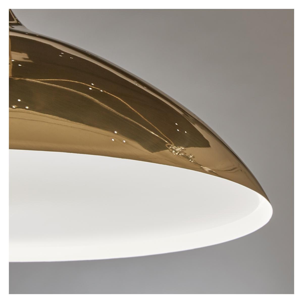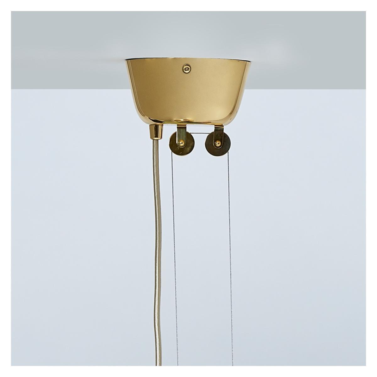 An iconic design conceptualised in 1948 by Finnish designer Paavo Tynell, the brass A1965 Pendant Light is expertly crafted by Gubi. Originally designed for New York's Finland House to showcase Finnish design, the statement pendant lampshade is characterised by its perforated triangular pattern that helps to cast a soft, diffused glow across the room. Boasting elegant brass accents, the A1965 Pendant Light features a brass counterweight to adjust the height of the light to suit any space and a matte glass diffuser to gently illuminate without glare. Renowned for his influence on modern lighting design, Paavo Tynell originally trained as a blacksmith before founding his own metalwork and lighting studio in 1918. With a simplified aesthetic, his pieces echo influences from mid-century modernism, showcasing counterweighted suspension mechanisms and beautiful complementary materials in appealing forms. Requires: 1 x Max 46W E27 bulb (not included)