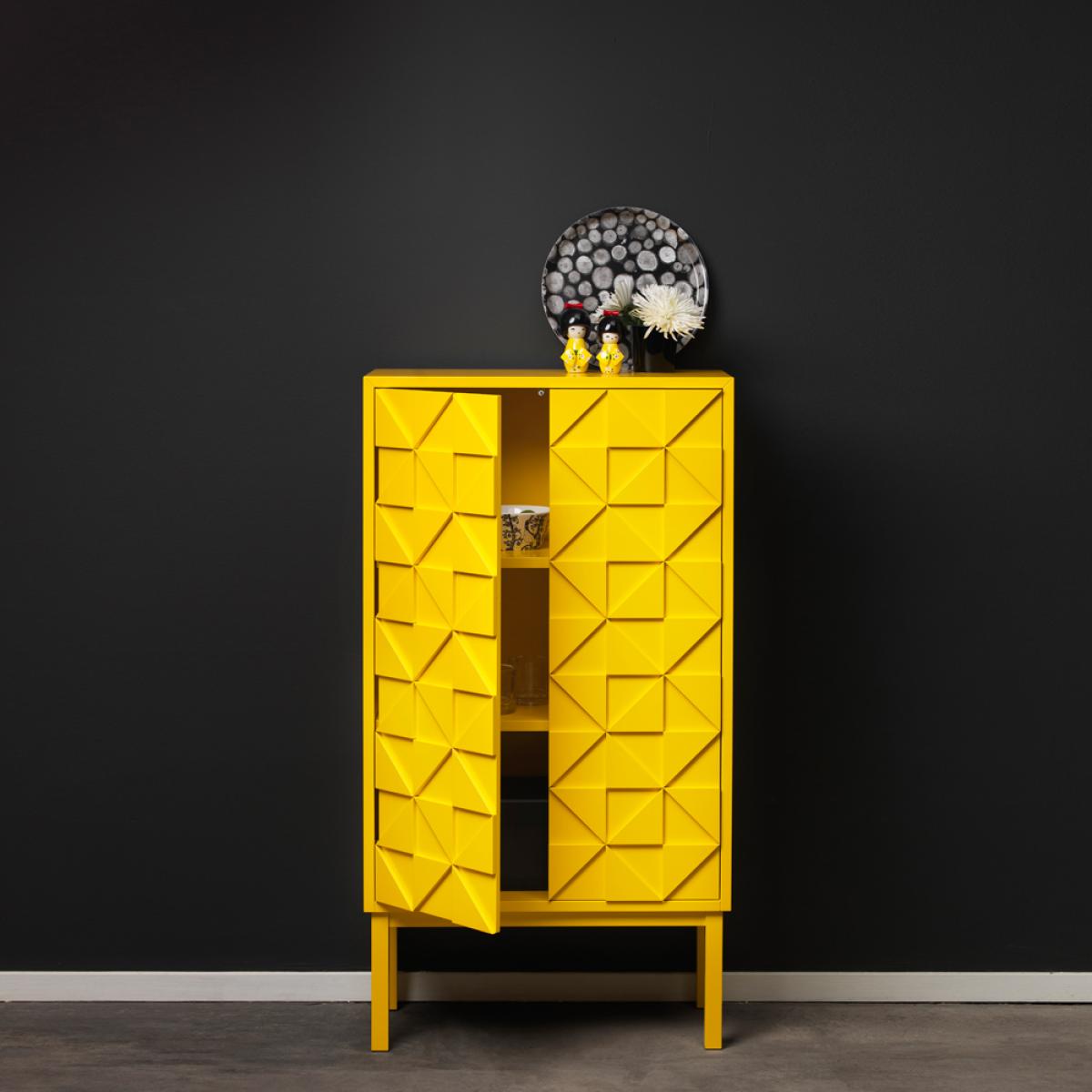 I love the A2 Collect 2011 cabinet in blue for its bold colour and interesting geometric pattern, making it a real statement piece. It works particularly well in contemporary interiors, especially those with a minimalist or Scandinavian vibe, as it adds a punch of colour and texture without overwhelming the space. Practical styling tips include pairing it with neutral walls and natural materials to let it stand out, or using it as a statement in a small room or hallway. It also works well as a storage solution in a living room or bathroom, where its height and design can help balance other furnishings while providing functional storage.