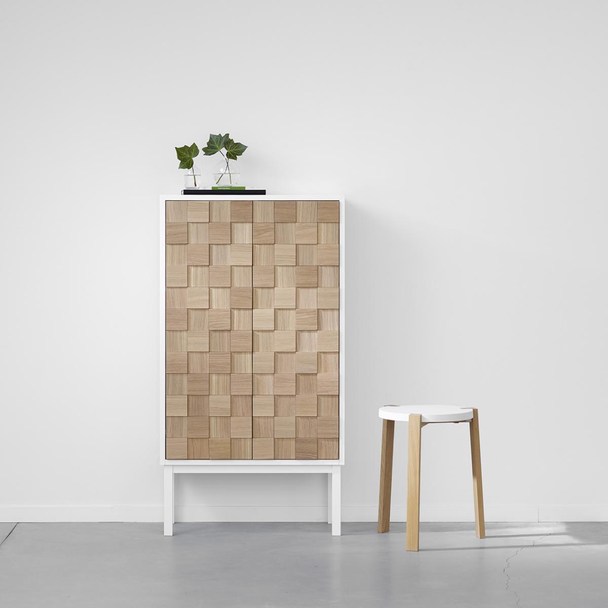 I love the A2 Collect 2016 cabinet in white oiled oak for its modern yet warm aesthetic, making it versatile across various interiors. Its geometric, blocky design adds visual interest without overwhelming a space, making it a great statement piece in contemporary or Scandinavian-style settings. It works particularly well in minimalist kitchens or living rooms where natural wood tones can bring in texture and warmth. Styling tips include pairing it with sleek, neutral-toned furniture and layering with soft textiles or plants for balance. Practicality-wise, its neutral palette allows it to seamlessly blend into both light and darker colour schemes, while the textured front adds a tactile element that keeps it from feeling flat or clinical.