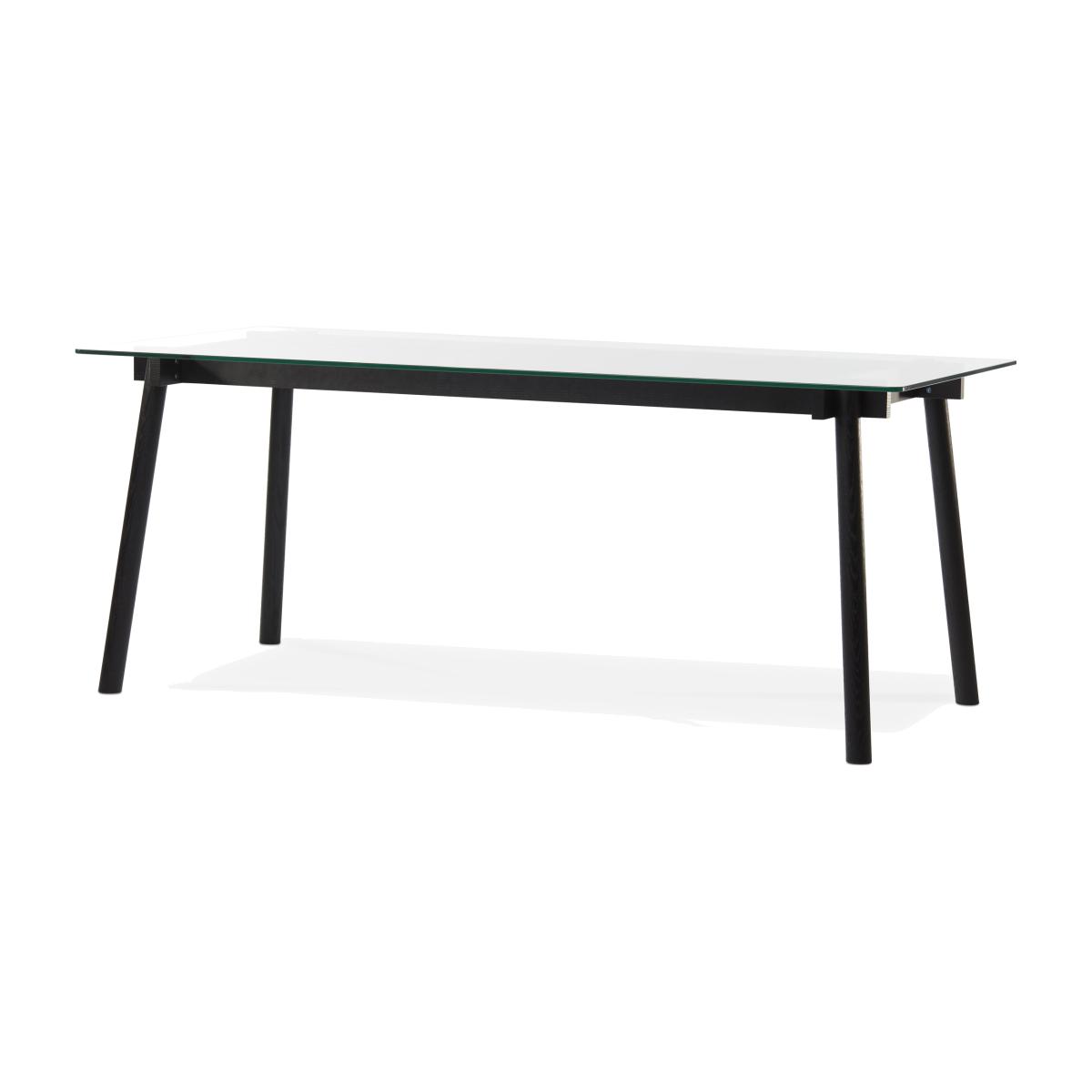 This dining table offers a sleek, contemporary look that seamlessly combines the warmth of oak with the modern edge of black stained finishes and a glass top. It works particularly well in minimalist or Scandinavian-style interiors, where its clean lines and contrasting materials can be highlighted without clutter. I love how the glass surface adds a sense of openness and ease of maintenance, while the oak adds warmth. For styling, consider pairing it with neutral or muted upholstered chairs to keep the focus on the table’s design, or introduce colour through accessories and tableware for a more vibrant setup. It’s versatile enough for both casual family meals and more formal dining spaces, making it a practical yet stylish choice.