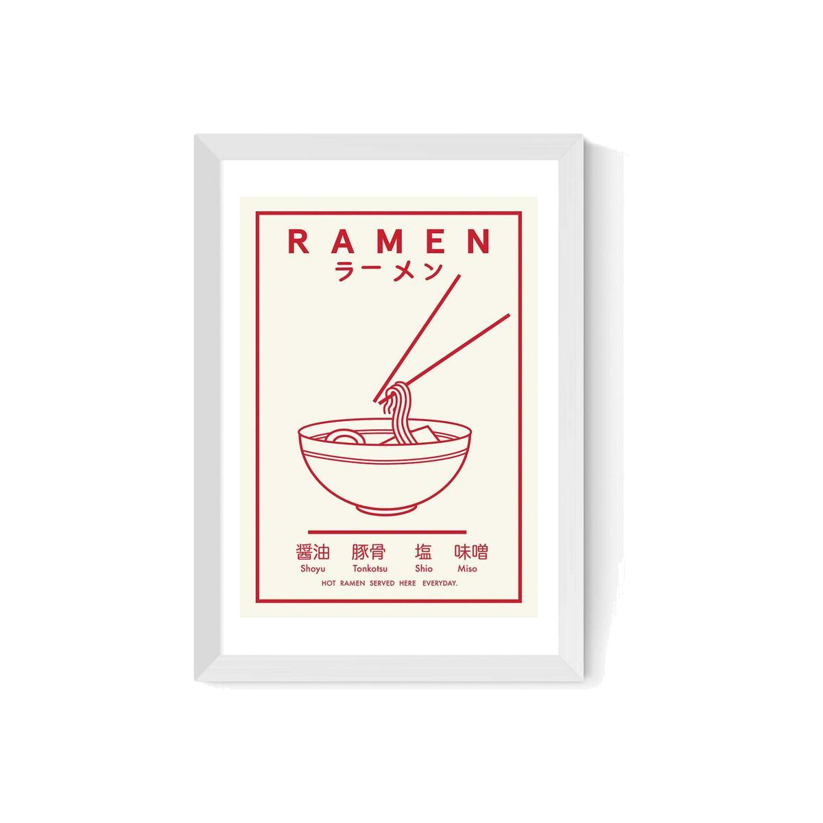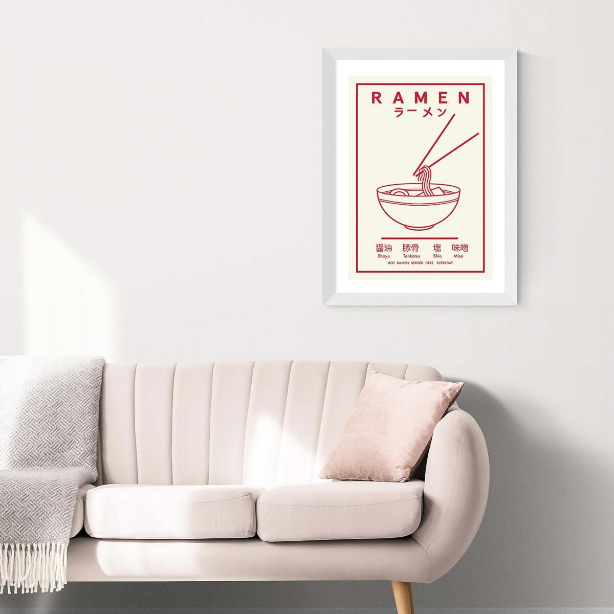 I really like this ramen print - it’s fun and adds a touch of playful minimalism to any space. Its clean, simple lines and pop of red create a great visual anchor, especially in more casual or contemporary interiors. It works well in kitchens, dining rooms, or even a quirky home office, where it can inject personality without overwhelming. To style it effectively, try pairing with other graphic prints or a neutral colour palette to keep the focus on the art. Framing it with a sleek, white border like shown helps it stay versatile and ensures it fits seamlessly into various decor styles.