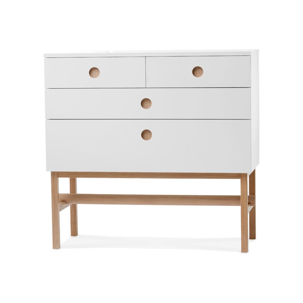 I love this dresser for its clean, minimalist look paired with the warmth of its oiled oak legs, which add a touch of natural texture. It works well in contemporary, Scandi-inspired interiors due to its simple lines and neutral palette, but it can also bring a fresh feel to more traditional spaces when accessorised thoughtfully. Practical styling tips include using the top surface for decorative pieces like vases or framed photos to personalise the space, while keeping clutter to a minimum to maintain its sleek aesthetic. The drawers provide ample storage, making it a versatile choice for bedrooms, living rooms, or even hallways. Overall, it's a stylish, functional piece that easily adapts to various interior styles.