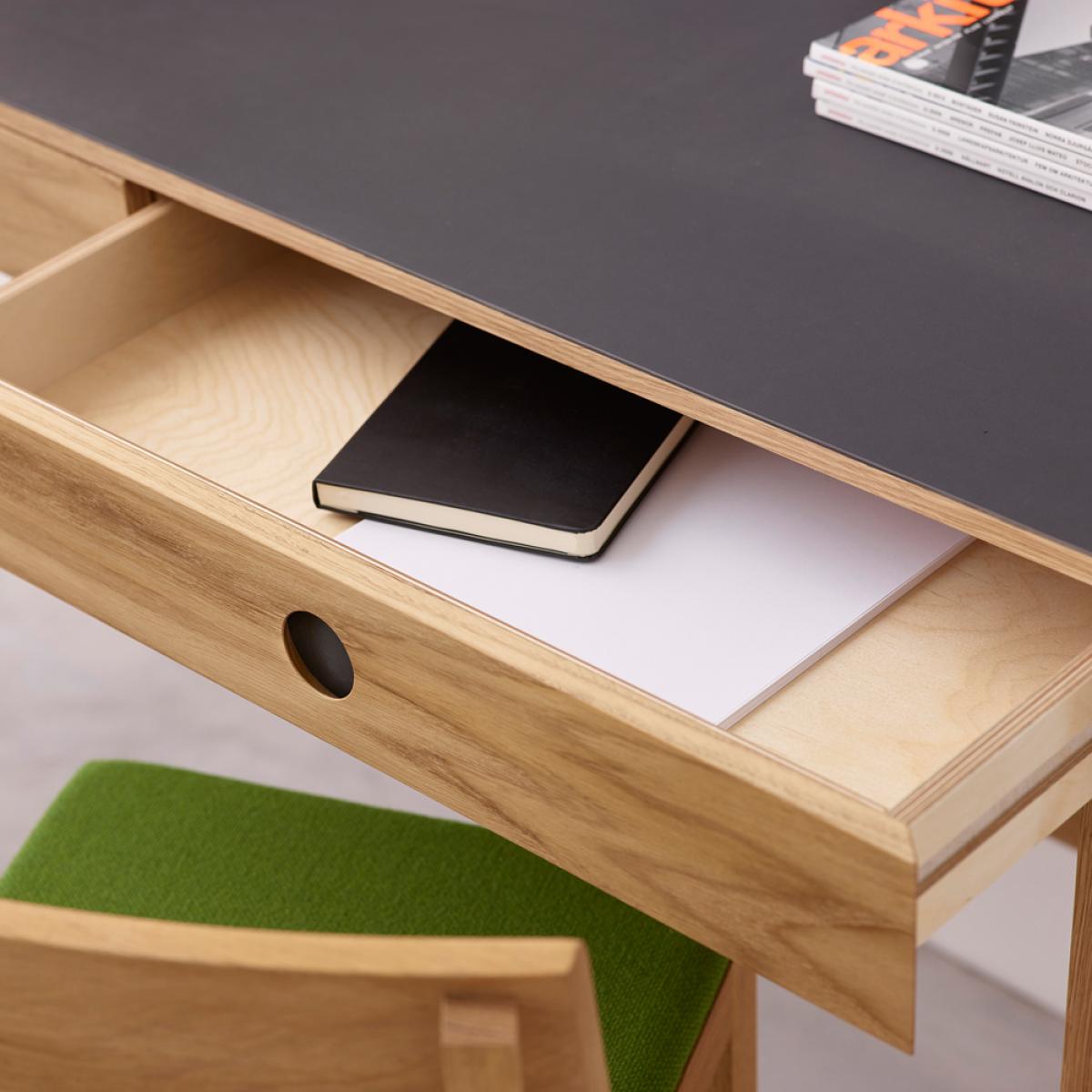 A2 Mind desk Black linoleum drawers and legs in white-oiled oak