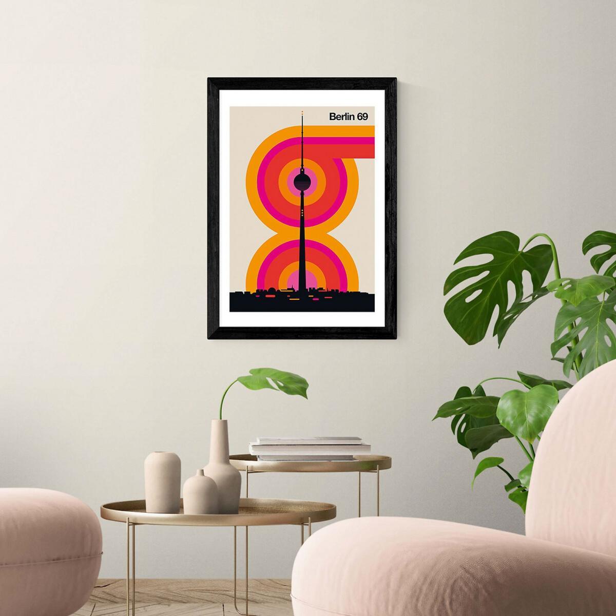 I love the Berlin 69 print for its bold, geometric design and vibrant colour palette, making it a great statement piece. It works particularly well in contemporary or minimalist interiors, where its graphic appeal can really stand out, but it can also serve as a colourful focal point in eclectic spaces. When styling, consider placing it above a neutral sofa or console to let the print shine, and pair it with other modern accessories for a cohesive look. For a balanced feel, keep surrounding decor simple and let the artwork do the talking. It’s versatile enough to suit both wall-mounted displays and spaces with a more casual, layered aesthetic.