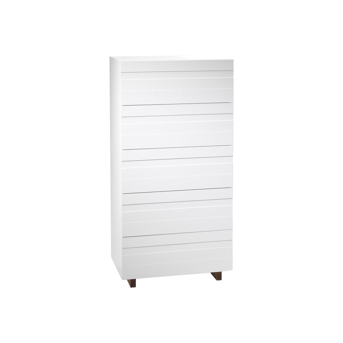 I really like this white chest of drawers with oak legs because of its clean, minimalist look that works well in a variety of interiors, from modern scandi to transitional spaces. The crisp white finish keeps things bright and fresh, while the oak legs add a touch of warmth and natural texture. It's versatile enough to serve as storage in a bedroom, living room, or even a hallway. To style it effectively, consider adding a few decorative objects like a lamp, a small plant, or some artwork above to keep the surface tidy yet inviting. Its straightforward design makes it easy to incorporate into both contemporary and more traditional settings, making it a practical yet stylish addition.