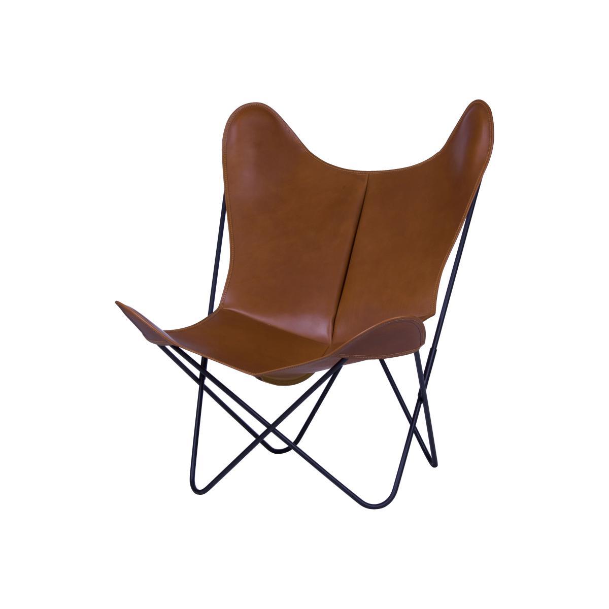 Reissue of the legendary and timeless Butterfly armchair. Created in 1938 by architect-designers Jorge Ferrari-Hardoy, Juan Kurchan and Antonio Bonet, Butterfly has made it through all times and styles, and become a classic in our collective memory. A true icon that has figured in permanent collections in MoMa since 1944. AA Butterfly armchair features a lacquered steel frame and leather seat, and subtly joins form and function in an elegant, minimalist and effective way. The design is inspired by the French Modern Movement which is illustrated by Le Corbusier’s work: extreme simplicity, geometric and functional lines, use of steel. AA Butterfly just invites you to relax and is thus ideal for long discussions in relaxation areas. The flexibility of leather and the enveloping form will give you maximum comfort! The cover is removable; you can buy more covers separately and change the look of your chair in the twinkling of an eye!.