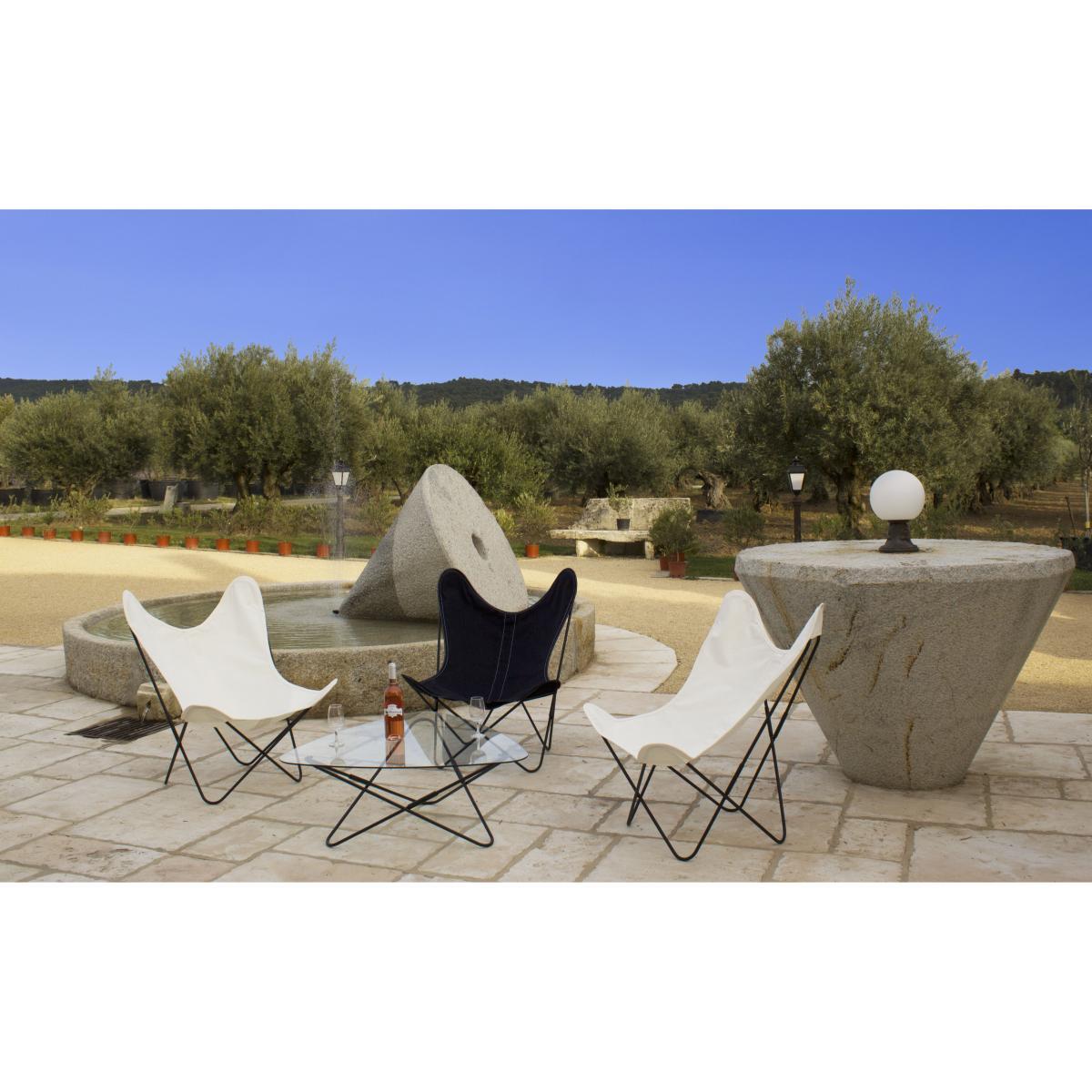 "AA - NEW DESIGN offers the original model of the mythical AA Butterfly chair. Whether used outdoors or in trendy interiors, the Butterfly chair continues to seduce all design lovers with purity and modernity of its design. Created over 70 years ago, it is and will always remain timeless. It offers a total comfort and provides an unparalleled sense of well-being and relaxation. After having worked in Paris with Le Corbusier in the 30'ies , Jorge Ferrari-Hardoy, Antonio Bonet and Juan Kurchan, three young architects and designers, went back to Buenos Aires and formed the ""Grupo Austral"". In 1938, they created the famous 197 model that became broadly known under the name of Butterfly or BKF chair. ".