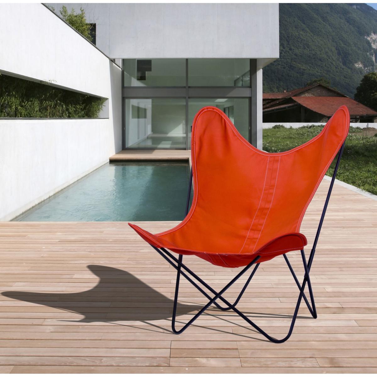 "AA - NEW DESIGN offers the original model of the mythical AA Butterfly chair. Whether used outdoors or in trendy interiors, the Butterfly chair continues to seduce all design lovers with purity and modernity of its design. Created over 70 years ago, it is and will always remain timeless. It offers a total comfort and provides an unparalleled sense of well-being and relaxation. After having worked in Paris with Le Corbusier in the 30'ies , Jorge Ferrari-Hardoy, Antonio Bonet and Juan Kurchan, three young architects and designers, went back to Buenos Aires and formed the ""Grupo Austral"". In 1938, they created the famous 197 model that became broadly known under the name of Butterfly or BKF chair. ".